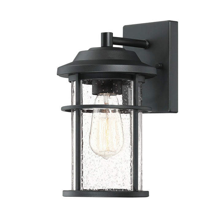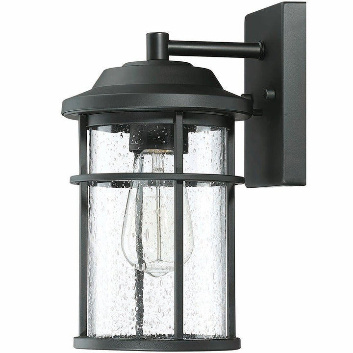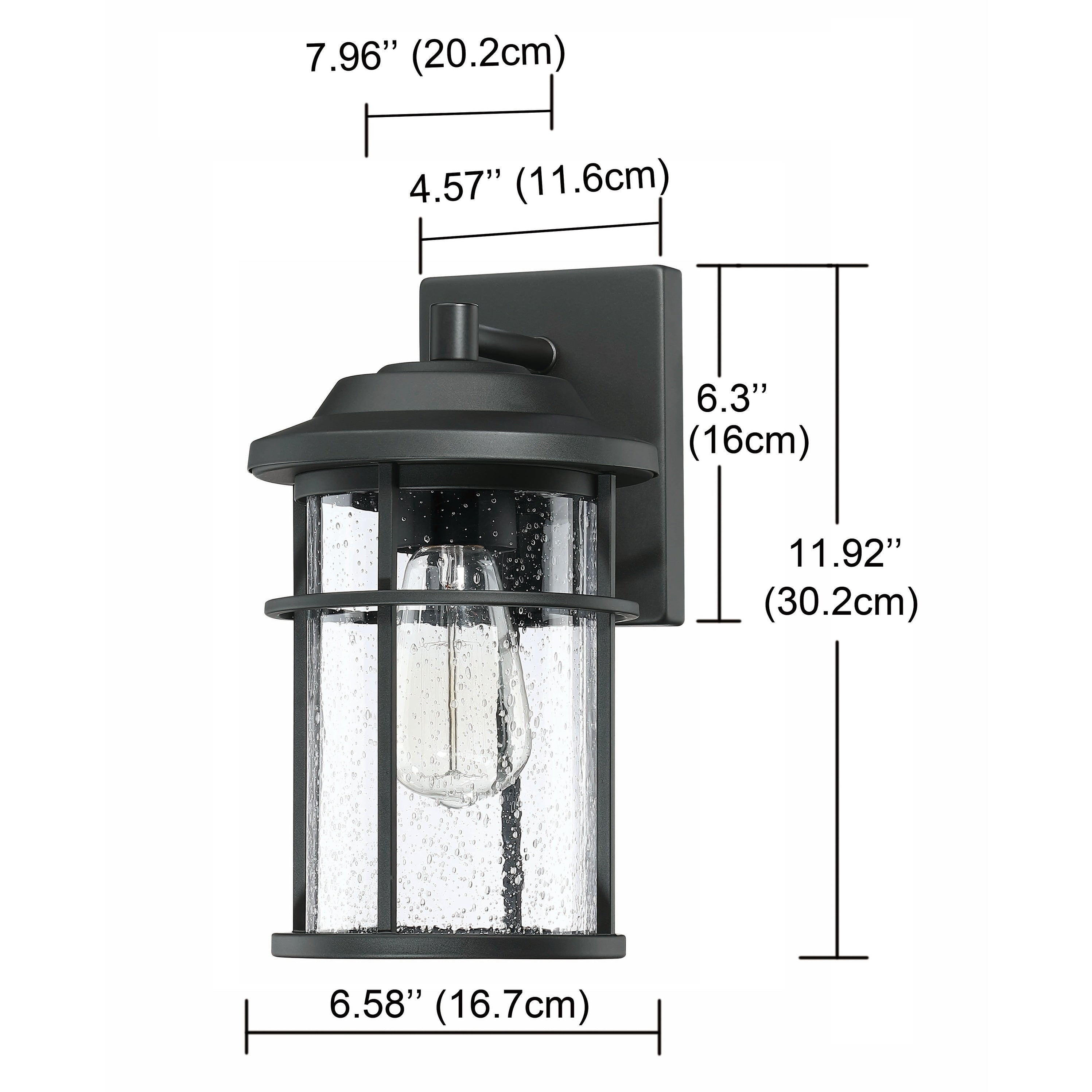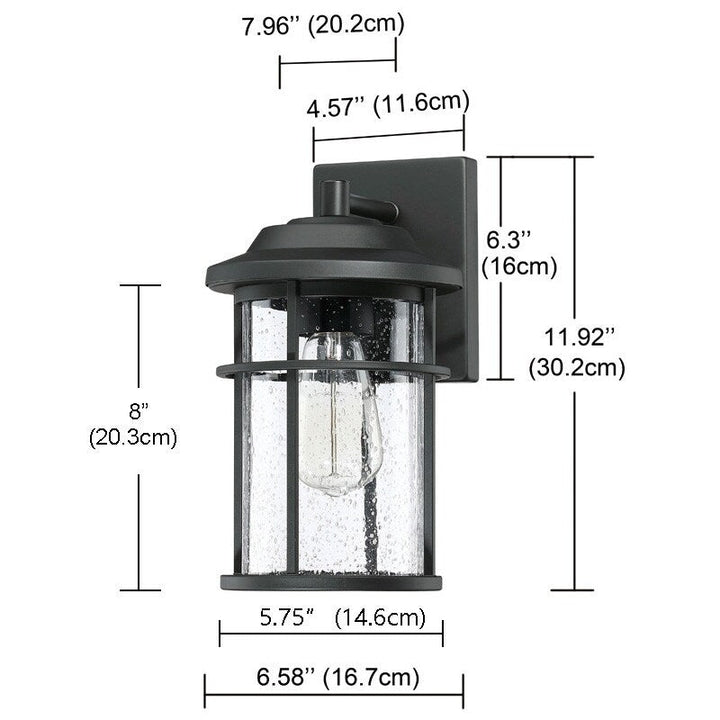 Elevate your outdoor space with this elegant 1 Light Black Coastal Barn Dome Outdoor Wall Lantern Clear Glass. Its timeless design exudes warmth and sophistication, featuring a clear seed glass that allows for uninterrupted light and a sleek black metal frame that adds interest. Illuminate your front door or terrace with this modern outdoor lamp that is easy to install and can be used with dimmable bulbs to create the perfect ambiance.