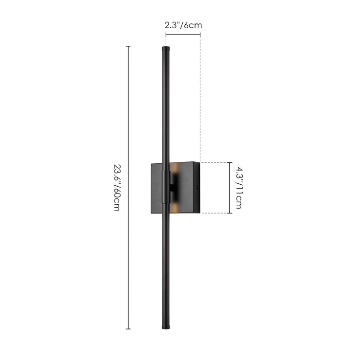 - Fixture: 23.6 in. W x 1.7 in. H x 1.7 in. D/ 23.6 in. W x 2.3 in. H x 2.3 in. D (extend from the wall)