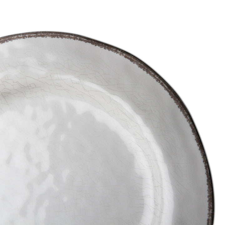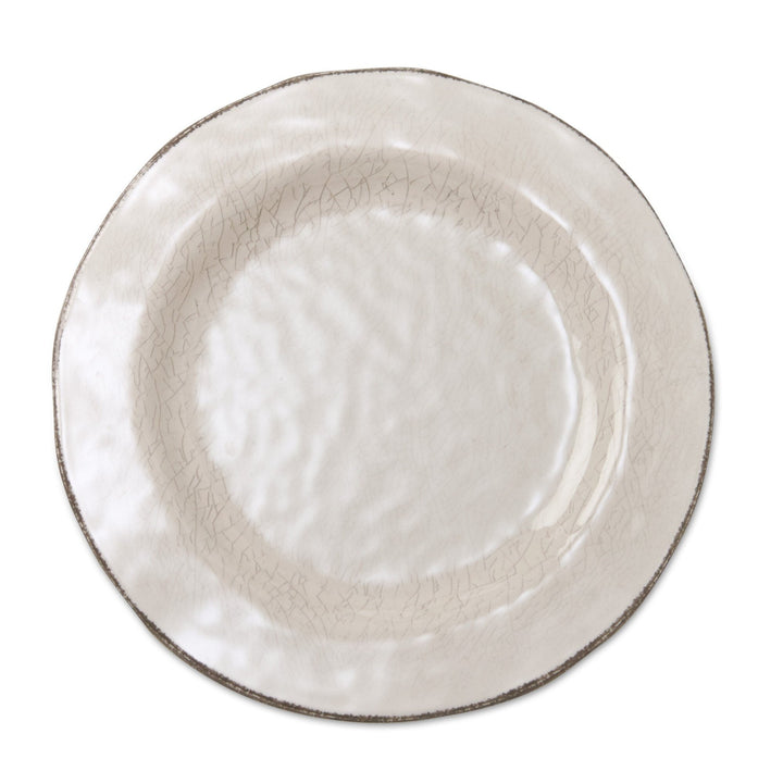 10.75 in. Veranda Cracked Glazed Solid Melamine Plastic Dinnerware Plates Set of 4 Dishwasher Safe Indoor Outdoor Ivory