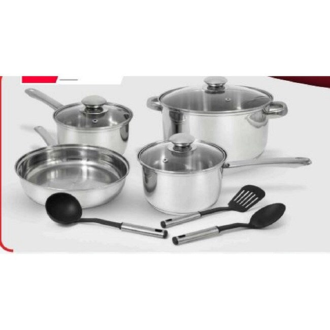 10 Pc Stainless Steel Cookware Set W/ Encapsulated Base, including Tools