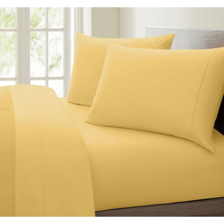 Give your bed a new, bright look with this luxurious sheet set from Porch & Den. Made of a cotton-rich blend fabric, these sheets are ultra-silky and soft for optimal comfort. They are also machine washable wrinkle-free for easy care.Machine washable—wash separately in cold water on a gentle cycle for approximately 15 minutes. Do not wash with other items. Do not bleach. Tumble dry on low. Iron as needed.Features: Includes flat sheet, fitted sheet, and 2 pillowcases (1 in Twin set) Made of 80-percent cotton, 20-percent rayon/polyester 1000 thread count Silky and smooth feel Available in various color options Wrinkle-free Fully-elasticized fitted sheet with 16-inch deep pocket Machine washableTwin Dimensions: Flat sheet: 66 inches wide x 96 inches long Fitted sheet: 39 inches wide x 75 inches long x 16 inches deep Pillowcase: 20 inches wide x 30 inches longTwin XL Dimensions: Flat sheet: 66 inches wide x 96 inches long Fitted sheet: 39 inches wide x 80 inches long x 16 inches deep Pillowcase: 20 inches wide x 30 inches longFull Dimensions: Flat sheet: 81 inches wide x 96 inches long Fitted sheet: 54 inches wide x 75 inches long x 16 inches deep Pillowcases: 20 inches wide x 30 inches longQueen Dimensions: Flat sheet: 90 inches wide x 102 inches long Fitted sheet: 60 inches wide x 80 inches long x 16 inches deep Pillowcases: 20 inches wide x 30 inches longKing Dimensions: Flat sheet: 102 inches wide x 108 inches long Fitted sheet: 78 inches wide x 80 inches long x 16 inches deep Pillowcases: 20 inches wide x 36 inches longCalifornia King Dimensions: Flat sheet: 102 inches wide x 108 inches long Fitted sheet: 72 inches wide x 80 inches long x 16 inches deep Pillowcases: 20 inches wide x 40 inches long