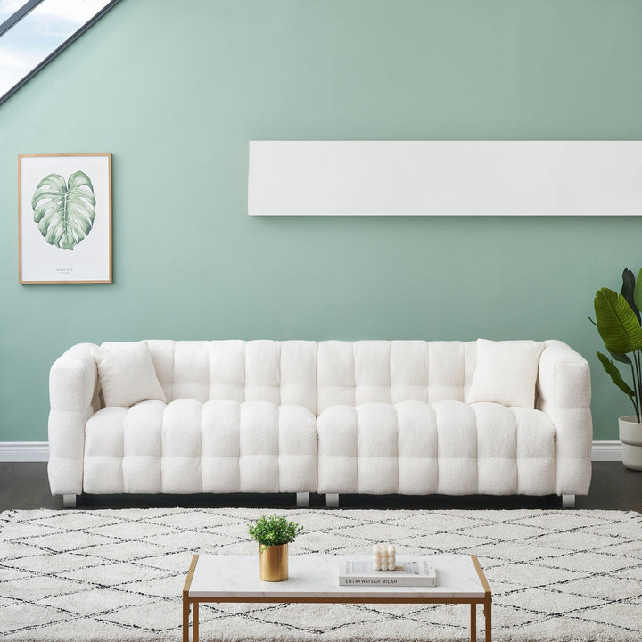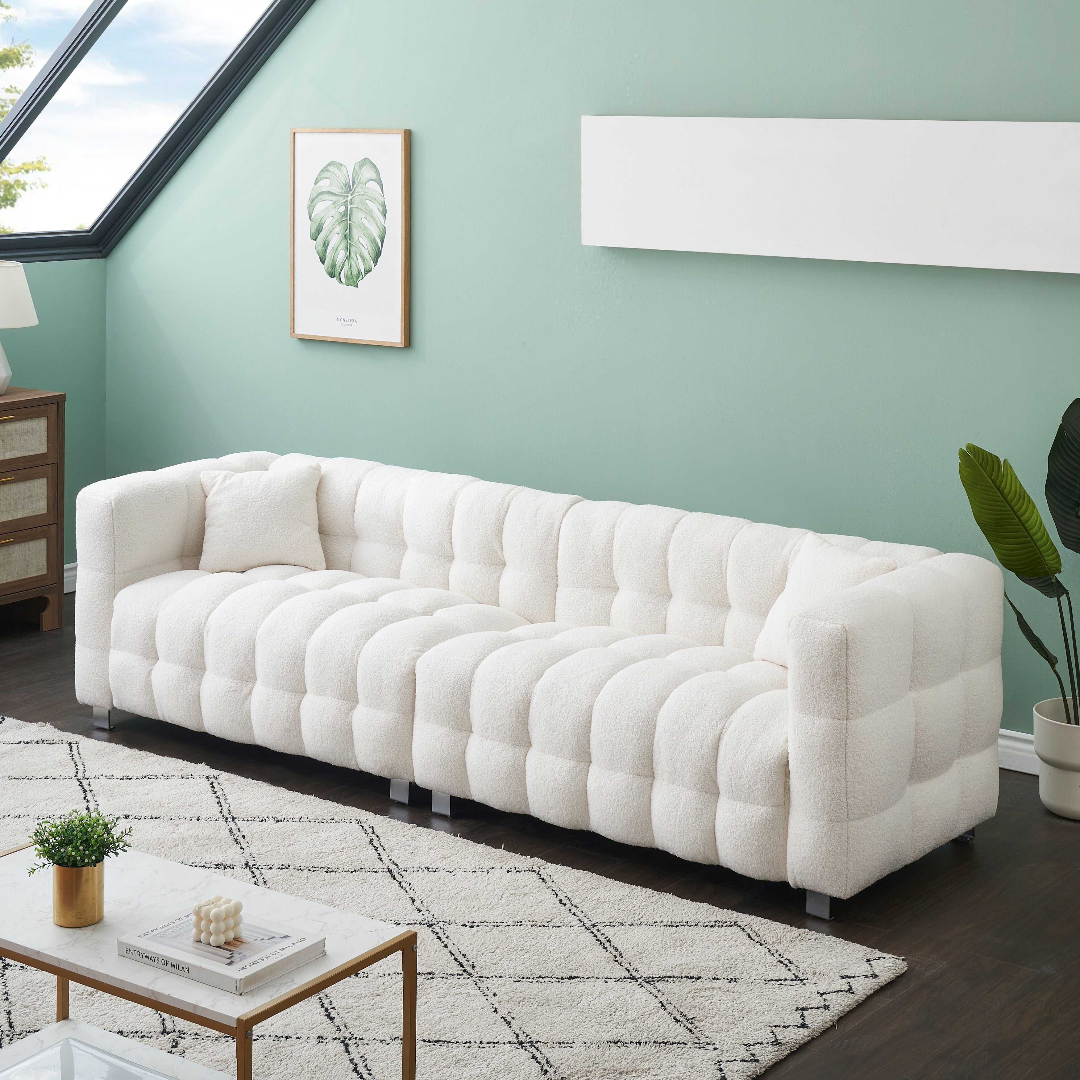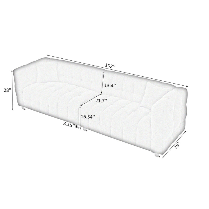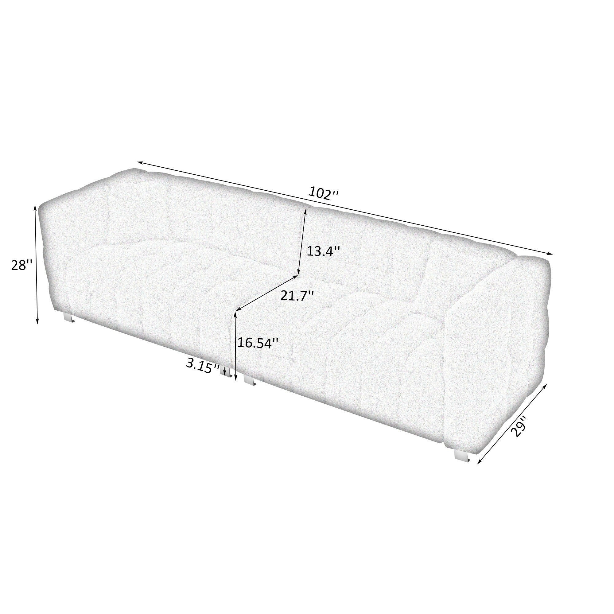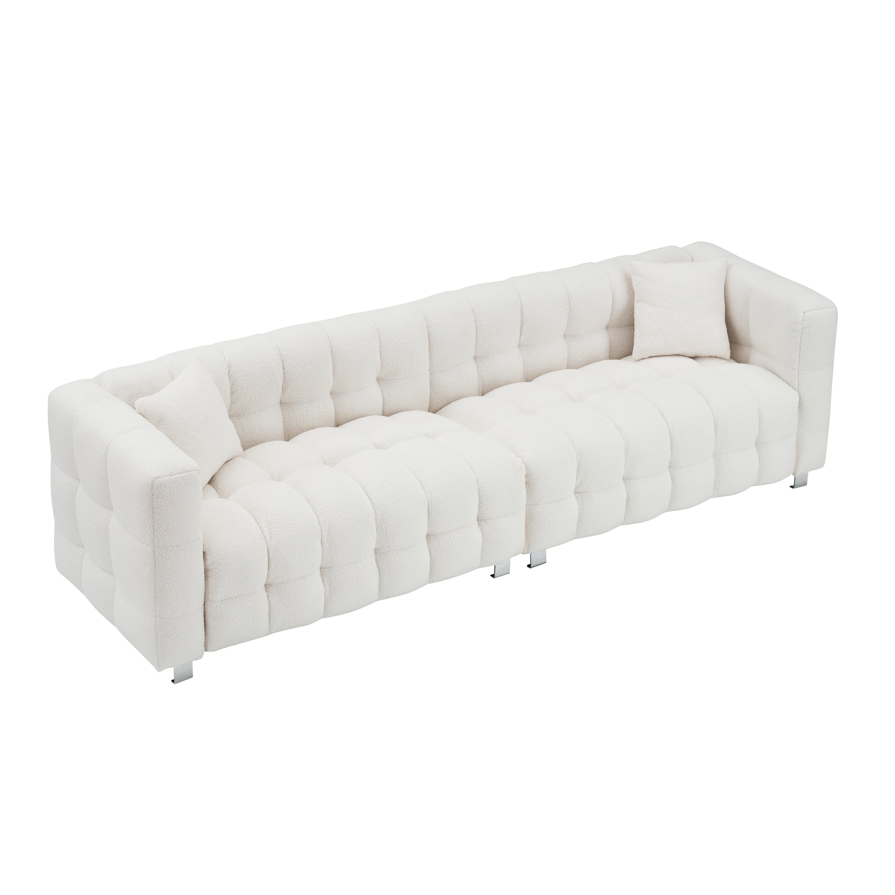 102'' Teddy Velvet 4-Seater Sofa with Metal Legs and Throw Pillows, Modern Multi-Directional Design for Living Room