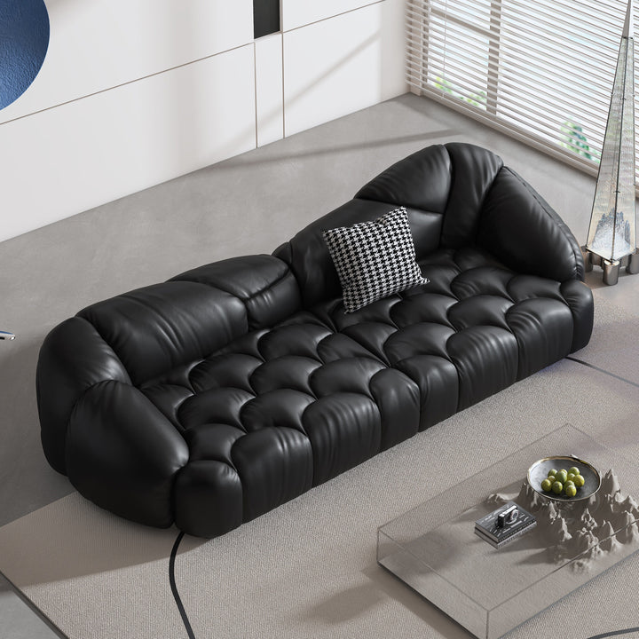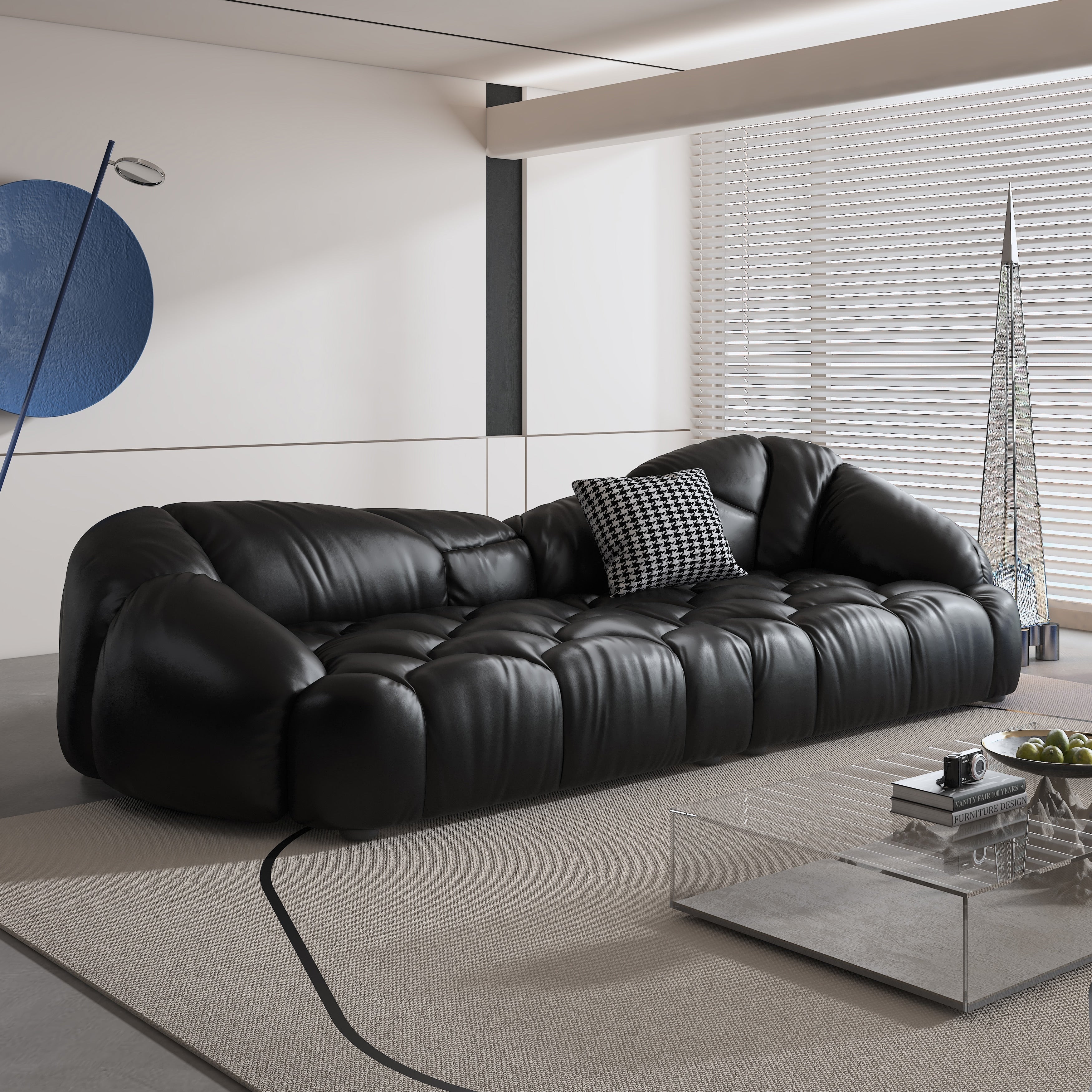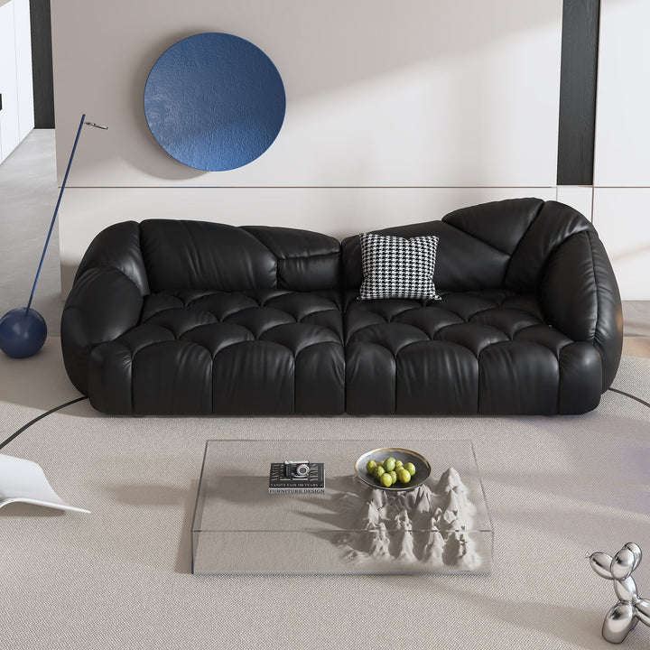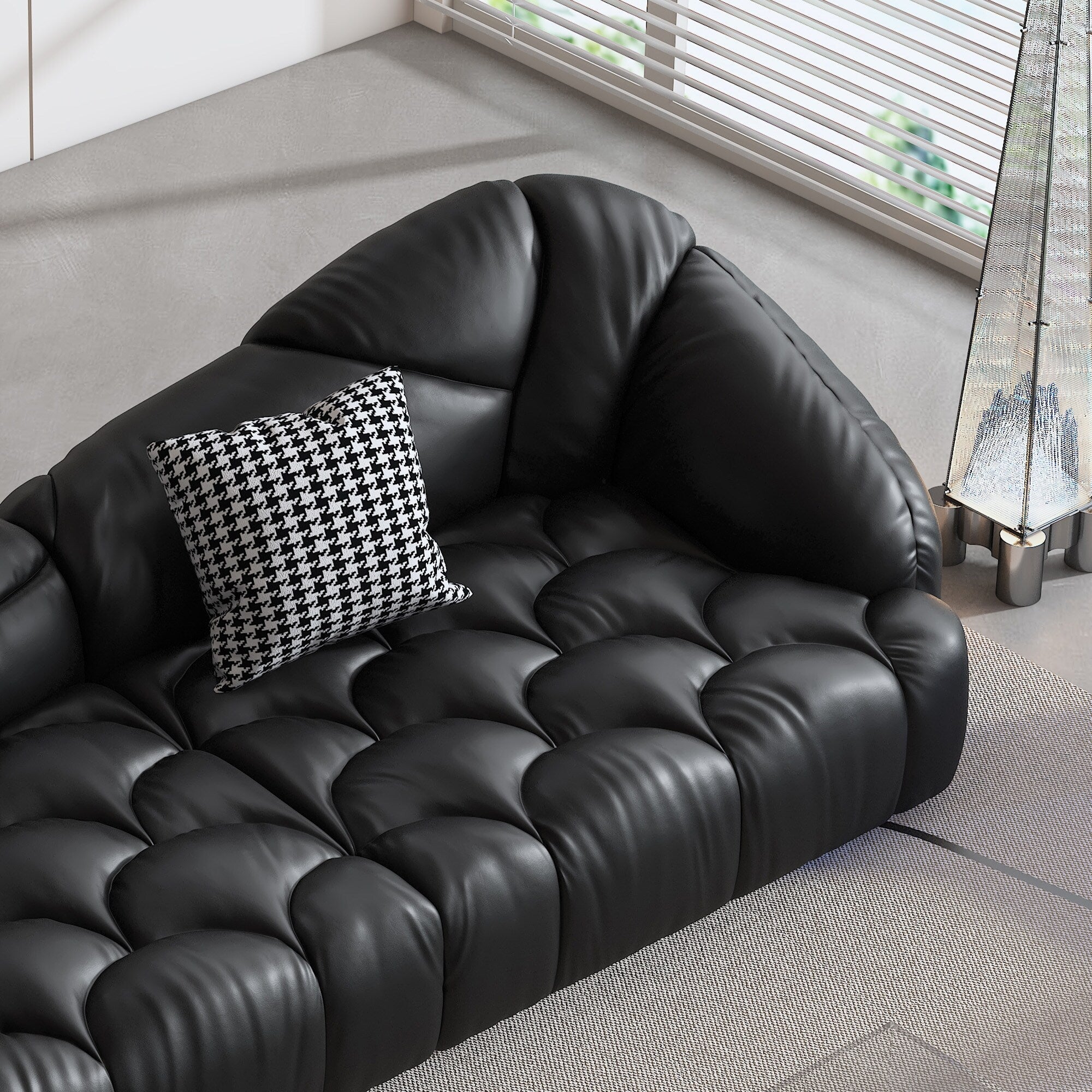 This novel curved sofa is a modern take on a classic design. With its sleek and minimalist design, it adds a touch of elegance to your living space (A toss pillow included).
