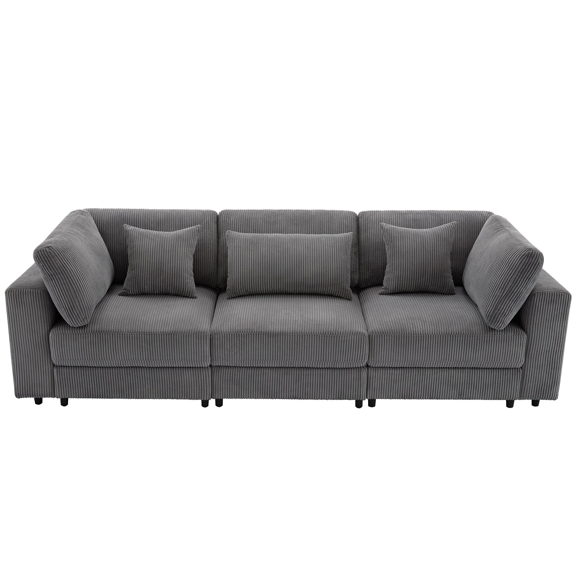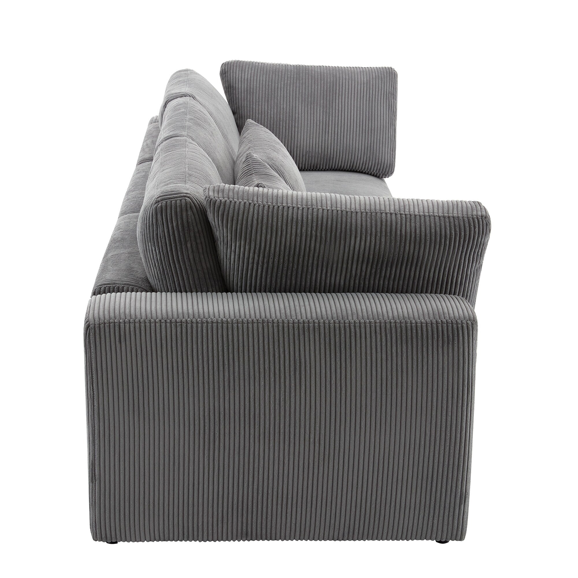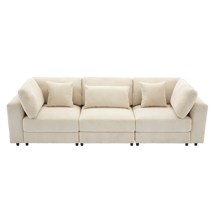 105 Corduroy Upholstered 3-seater Sofa with Removable Back Cushions and 5 Pillows for Living Room