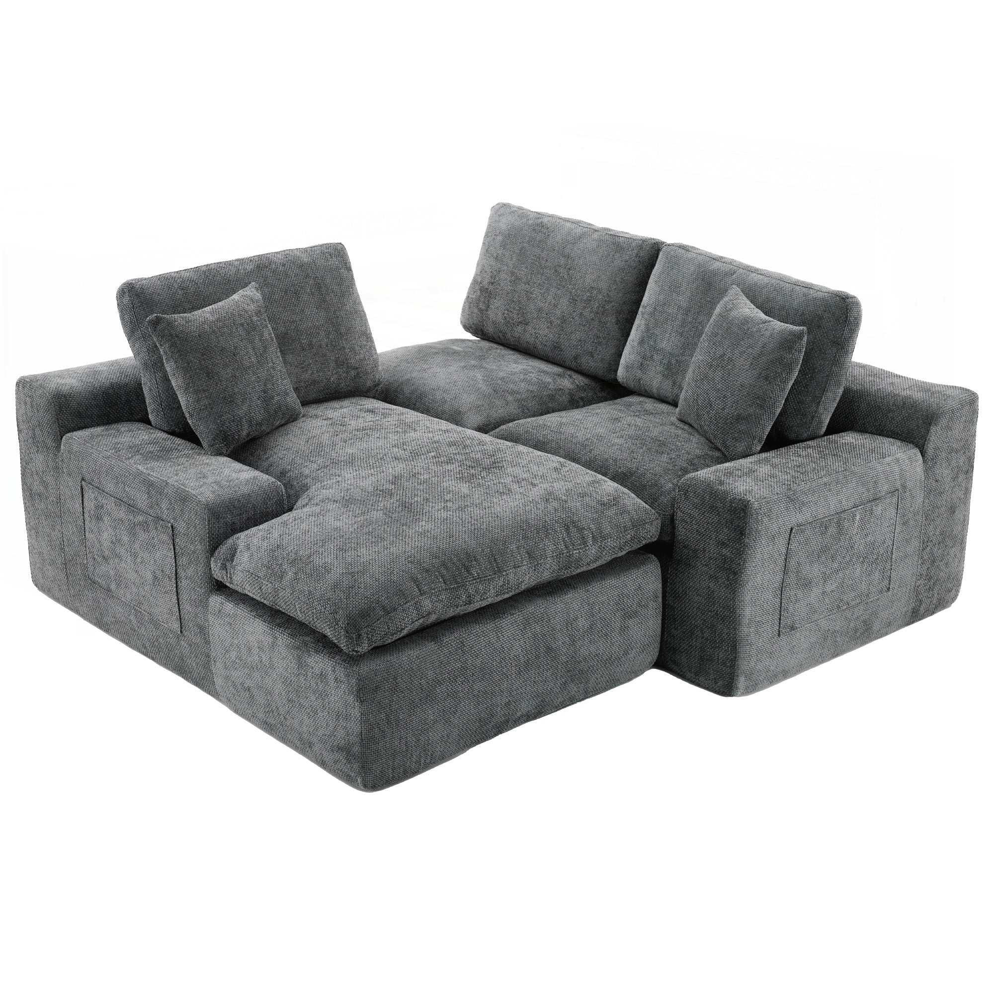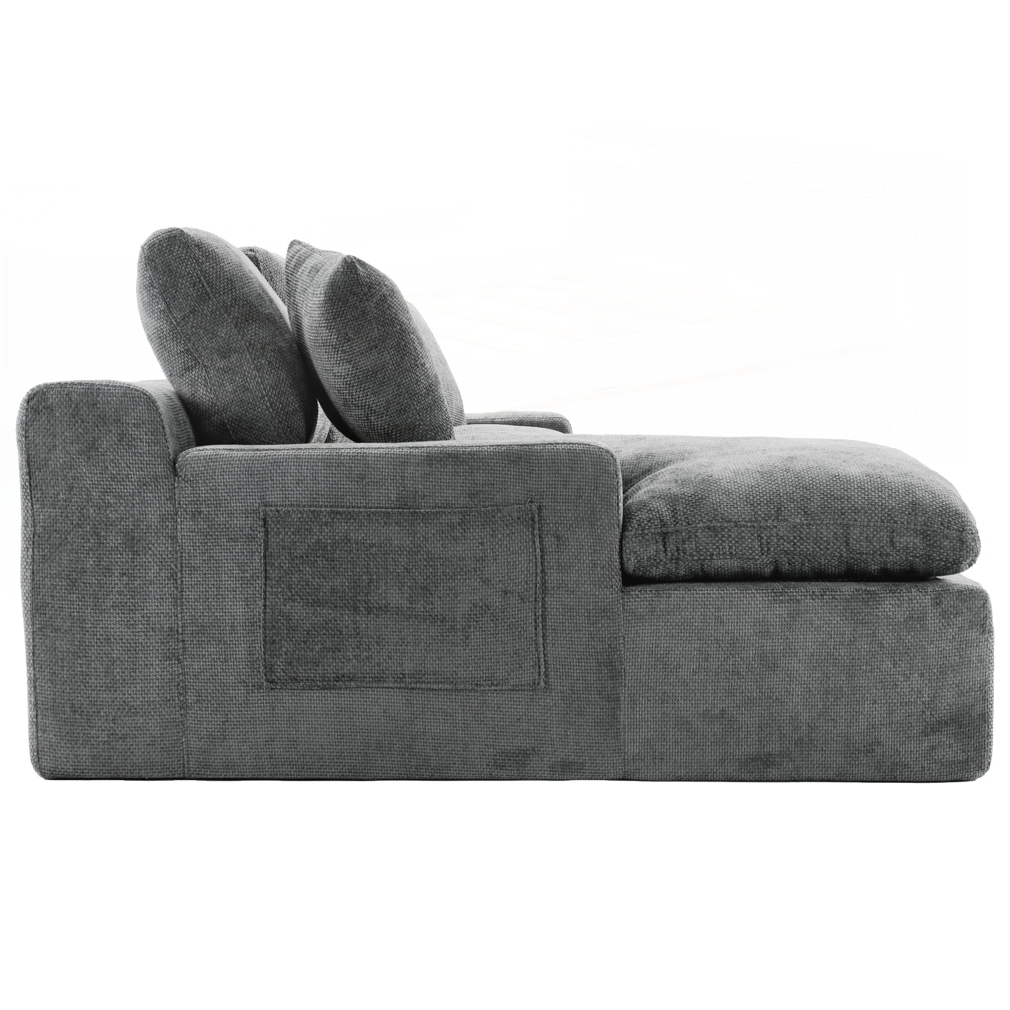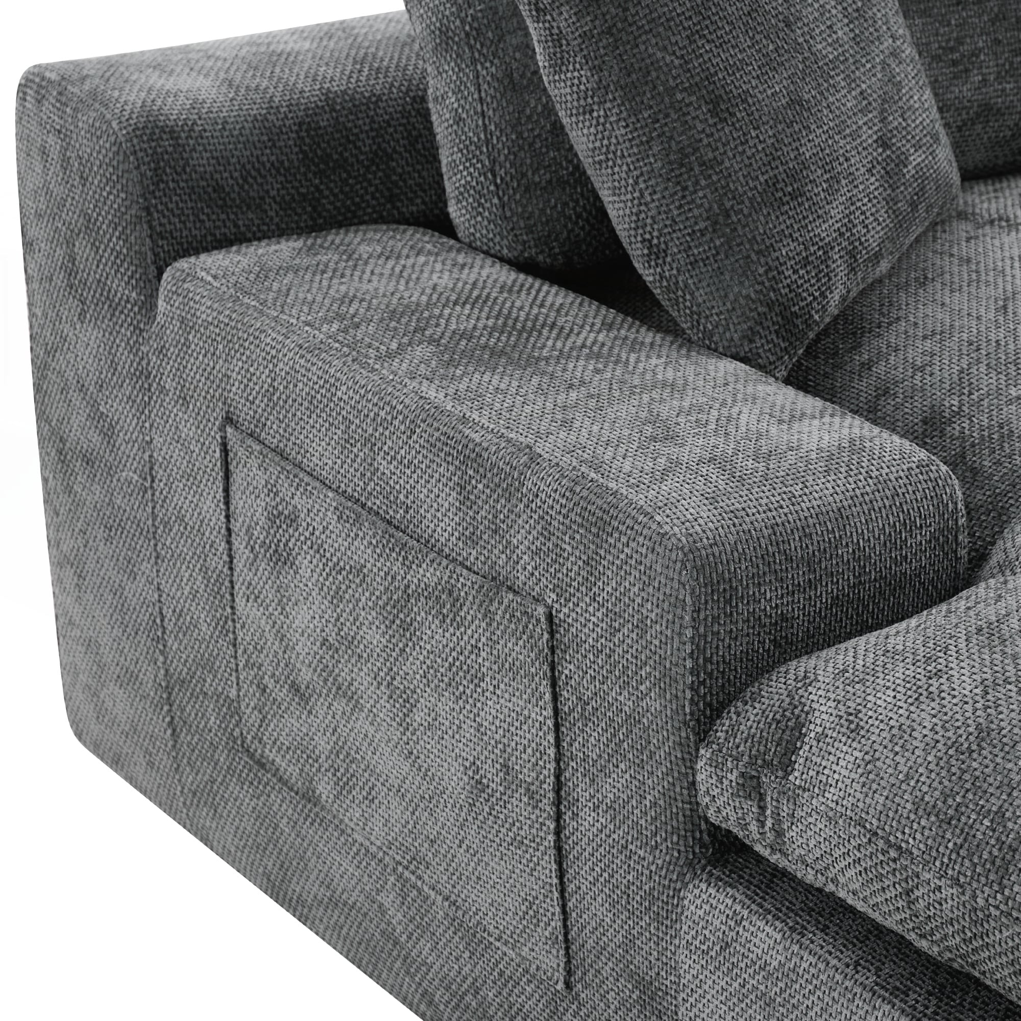 Double-layer Cushion The seating area is thoughtfully crafted with a double-layered cushion system, offering an exquisite balance of enveloping softness and enduring support. The top layer, filled with ultra-soft compression foam, delivers an immediate 'sink-in' embrace, inviting you to unwind in effortless comfort. Beneath, a firmer structural layer ensures the seat maintains its elegant form and resilient plushness, even after prolonged daily use â?a testament to lasting luxury. Side Storage Pockets Both armrests are discreetly designed with integrated storage pockets, providing an elegant solution for keeping remotes, magazines, tablets, or even a cozy throw blanket within easy reach. Maintain a clean, sophisticated living space without compromising on convenience or comfort.