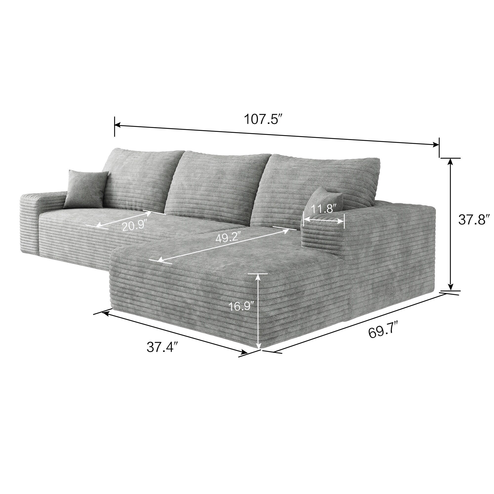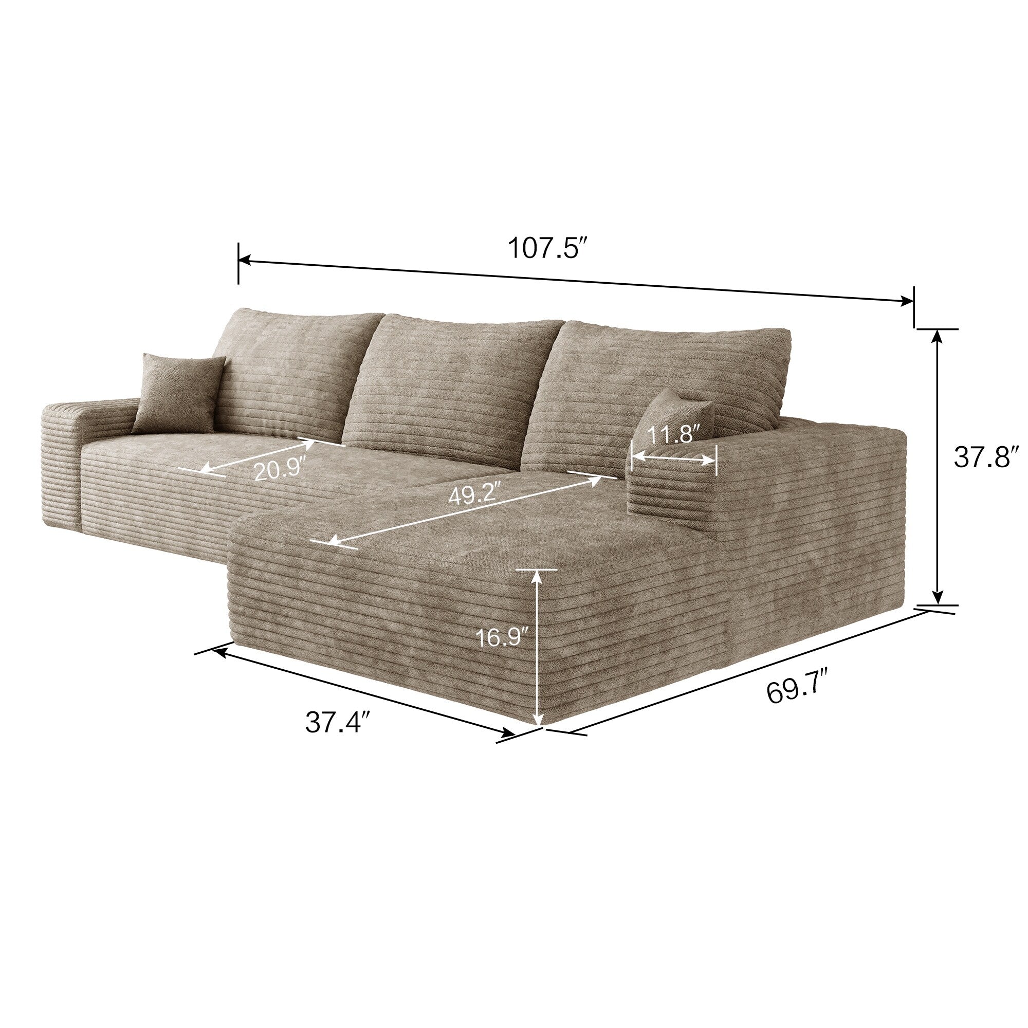 107-Inch Modular Corduroy Sectional Sofa with Chaise and Deep Seating for Living Room Bedroom