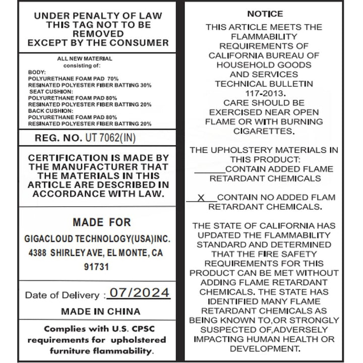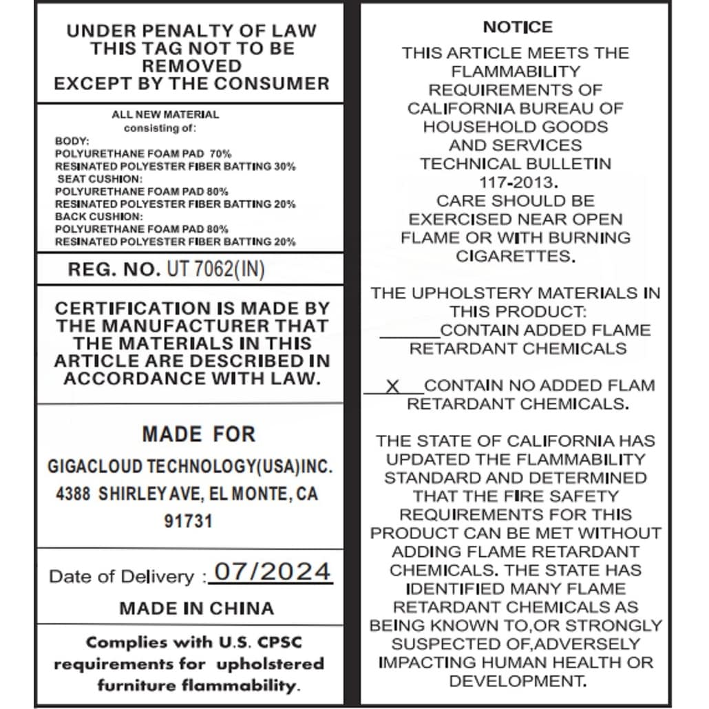 Back Fill Material : Foam+PP cotton