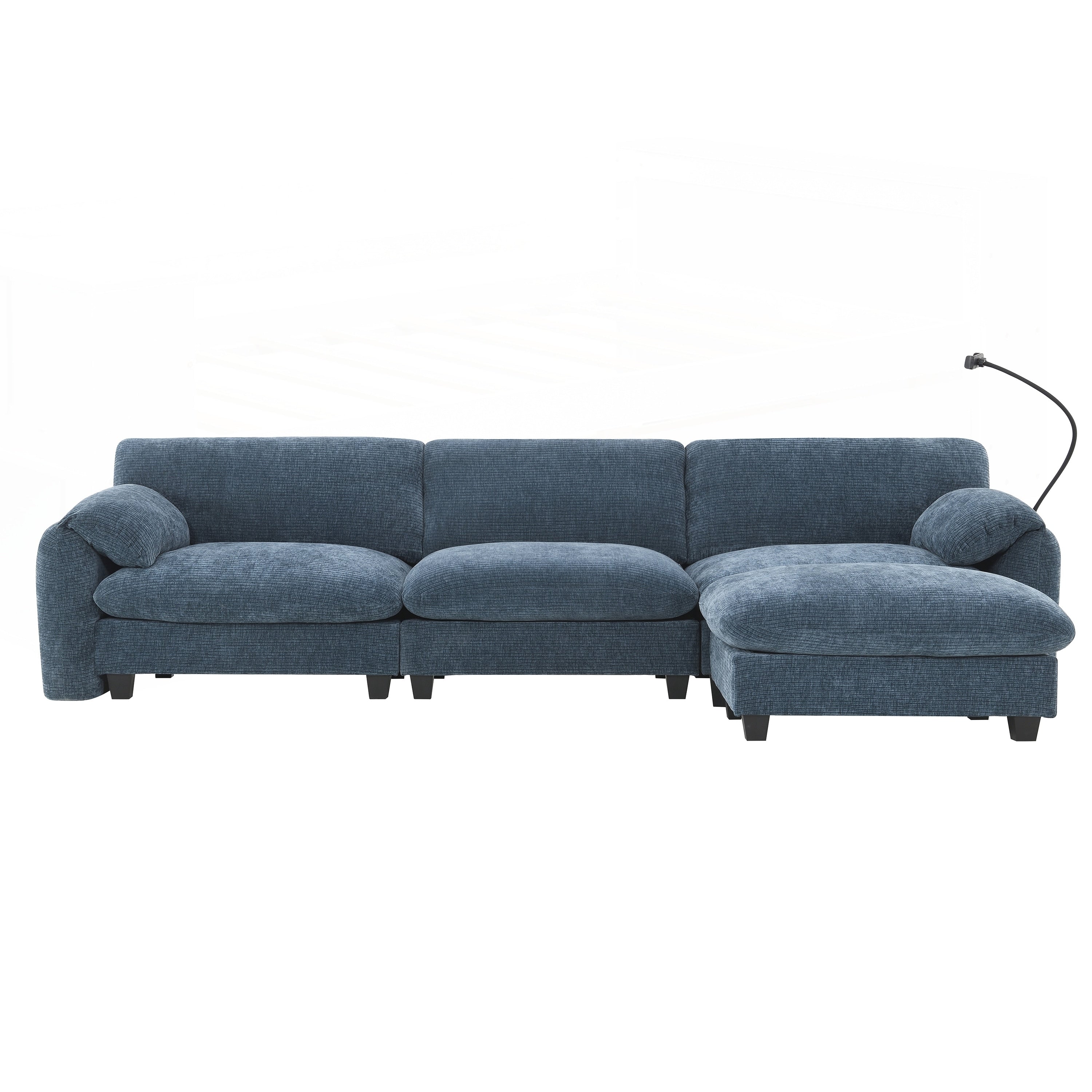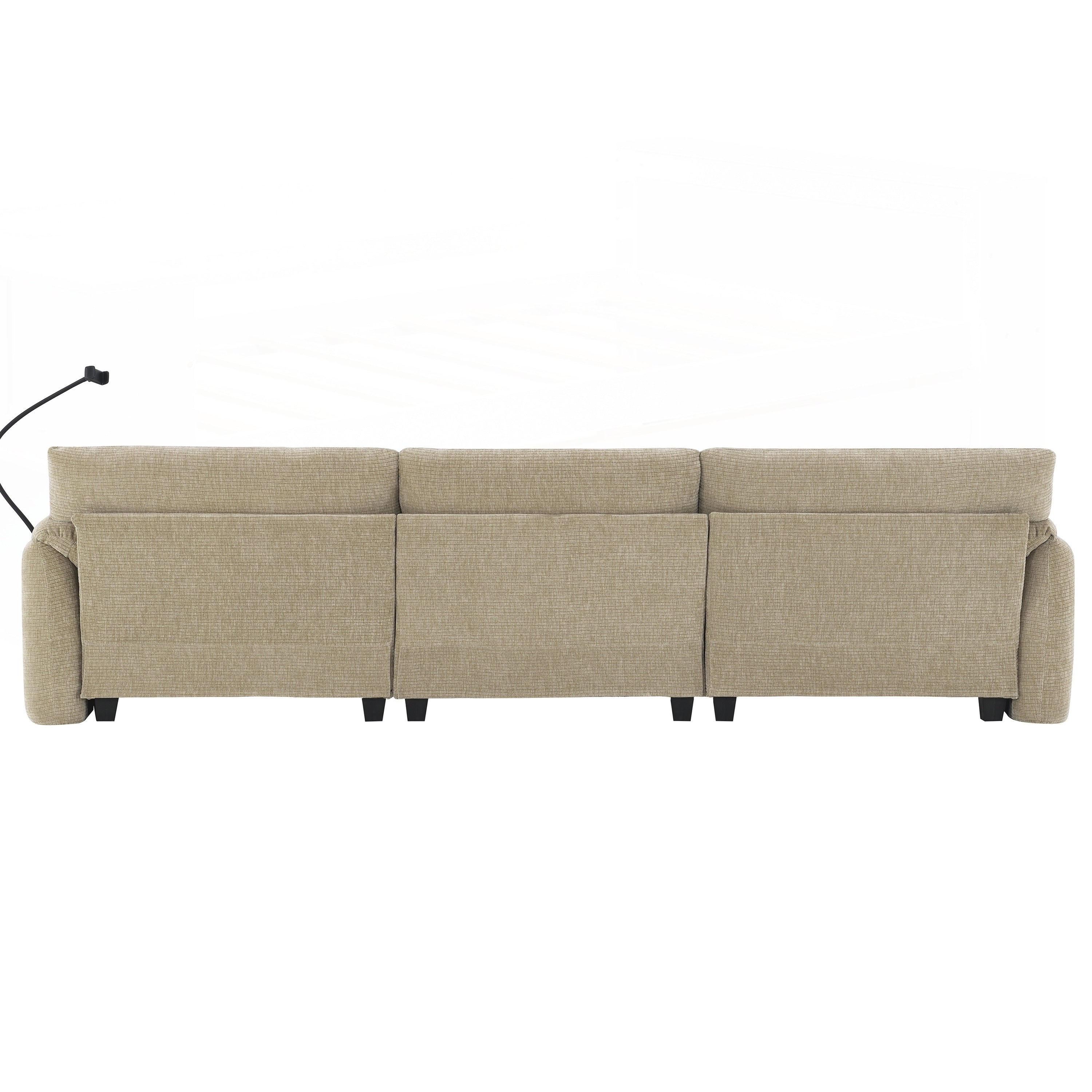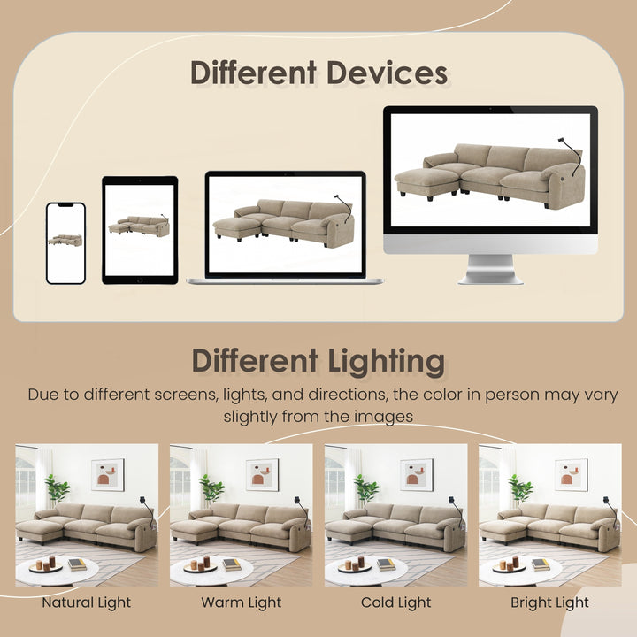 Side Storage PocketsãUSB Charger and phone cradleï¼?Designed with storage pockets on both sides, this sofa makes it easy to keep essential items like books, magazines, or remote controls within reach. USB Charger and phone cradle are practical for everyday use, helping to reduce clutter and make your living space more organized. Convenient Armrests: Having armrest pillows on both sides of the sofa provides extra support and comfort for your arms and shoulders. They offer a place to rest your arms while sitting, making it easier to maintain a relaxed posture. Movable Ottomanï¼?The sofa comes with a removable ottoman, which can be repositioned as needed. Whether used as extra seating, a footrest, or a coffee table, the ottoman adds versatility to the layout. You can move it to any part of the room to suit your seating preferences or change the arrangement to suit different