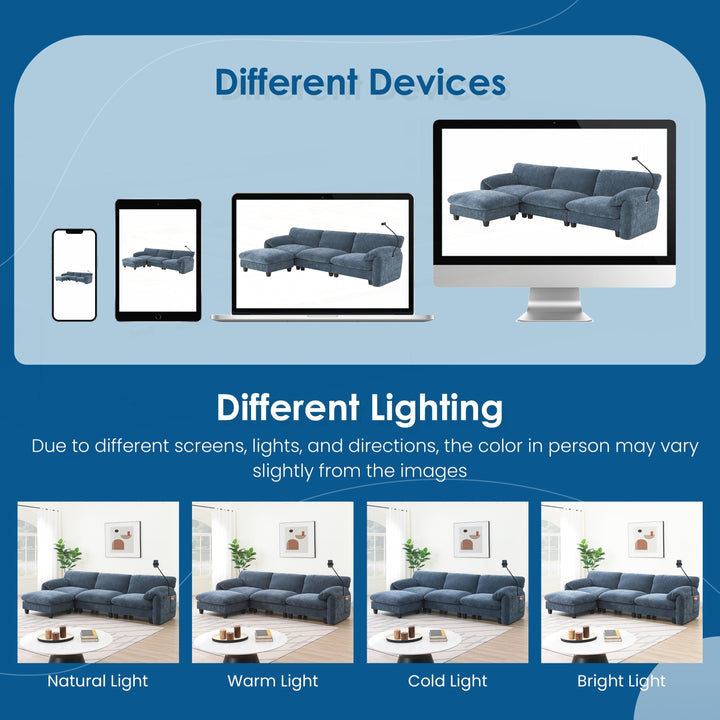 Thoughtful Design: The modular design allows for easy customization, so you can rearrange the pieces to fit your space or change the layout as desired. The chenille fabric adds texture and elegance to the sofa, providing a plush and cozy feel while enhancing the overall aesthetic with its sophisticated look.