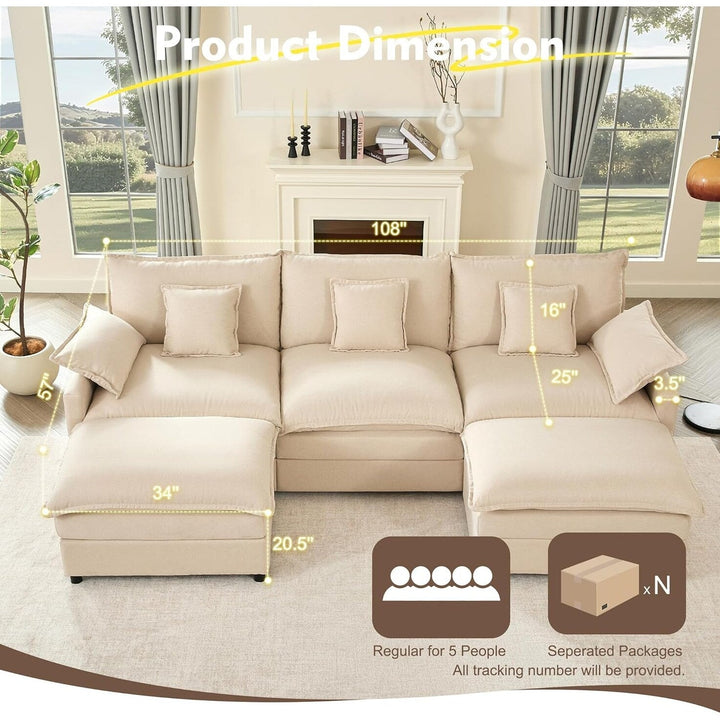 108 L-Shaped Modular Sectional Sofa - 3-Seater Cloud Couch with Movable Ottoman & Deep Seating, Beige Linen Fabric