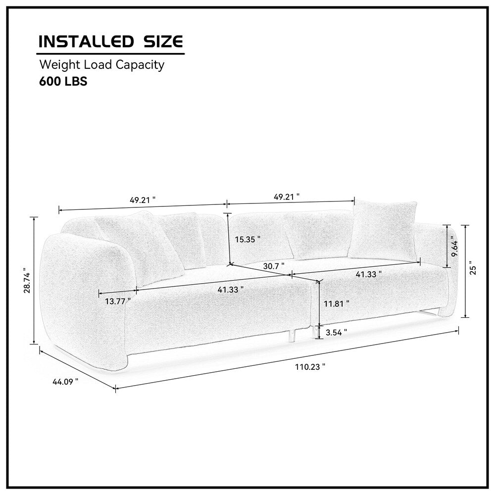 - Product Size:This couch for the living room measured 110.23'D x 44.09'W x 28.97'H, spacious size is good for big families and reception guests, stylish design is ideal for various applications such as apartments, lounges, and clubs.
