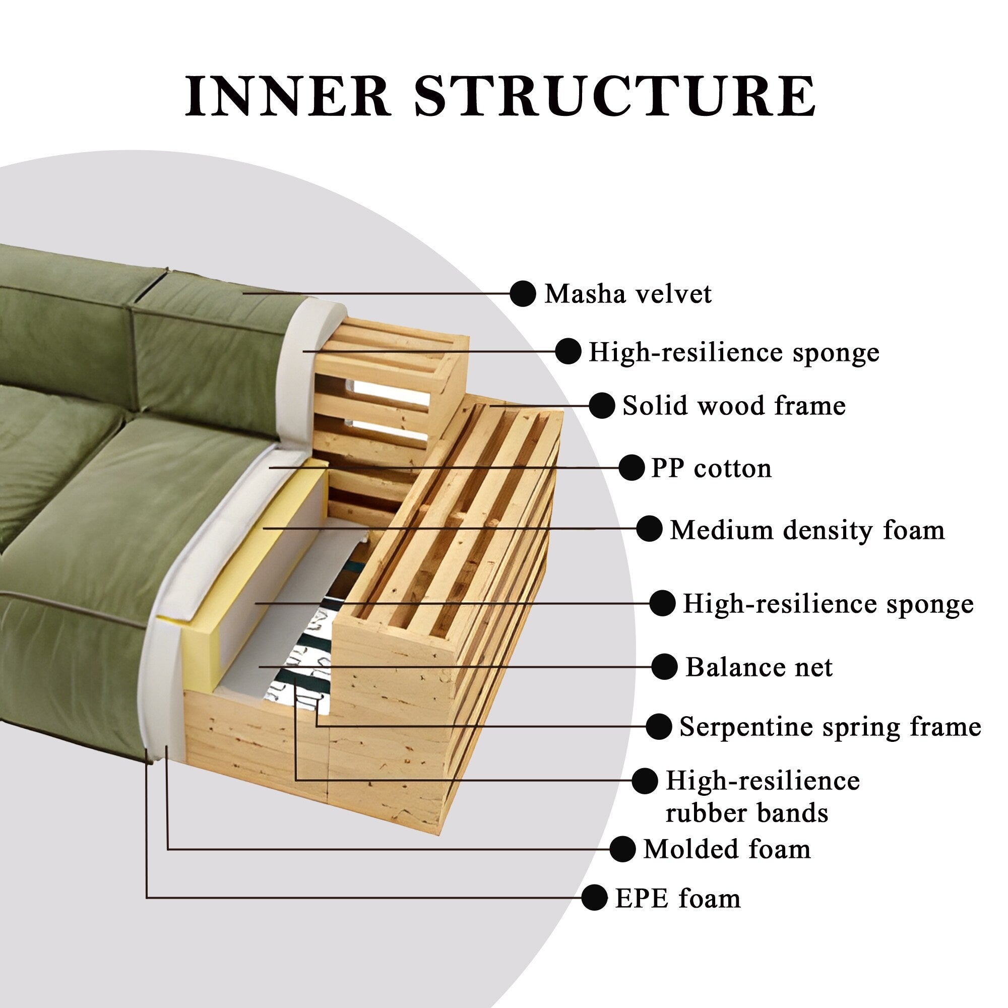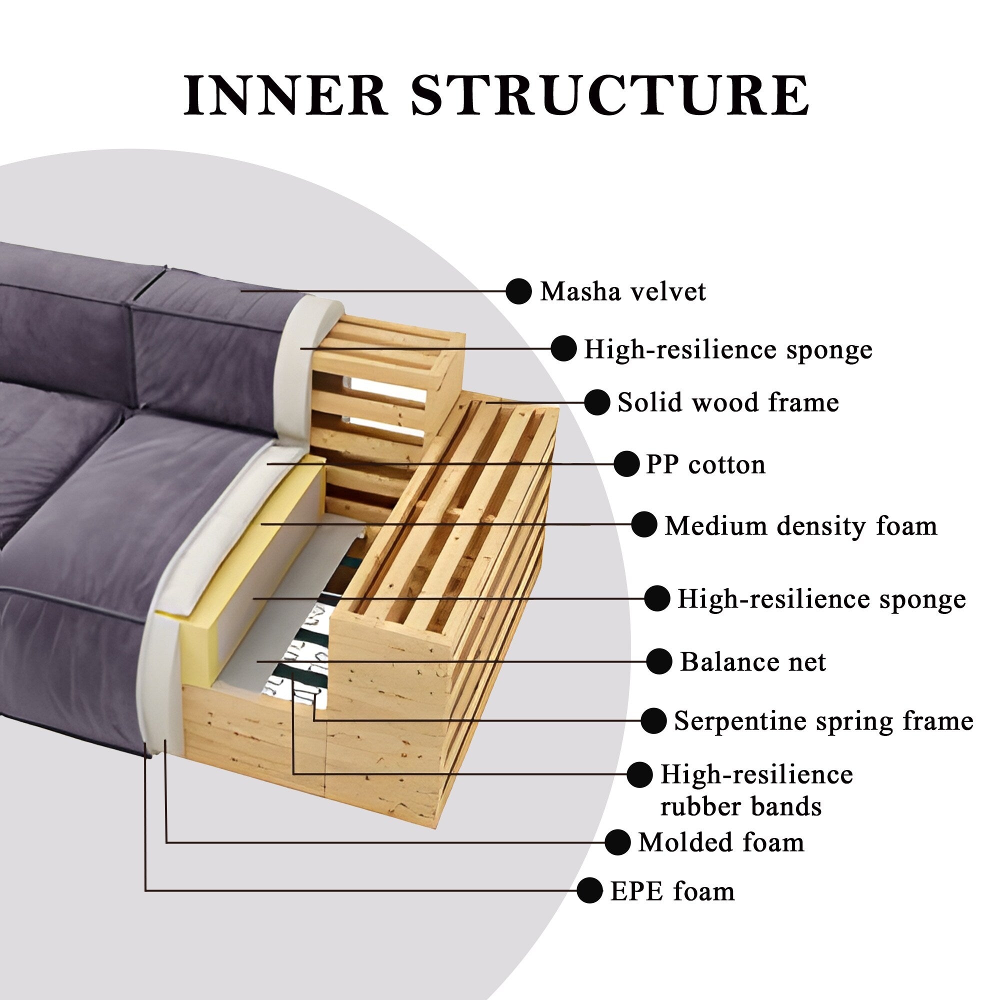 - Sofa Filling: high-density resilient foam