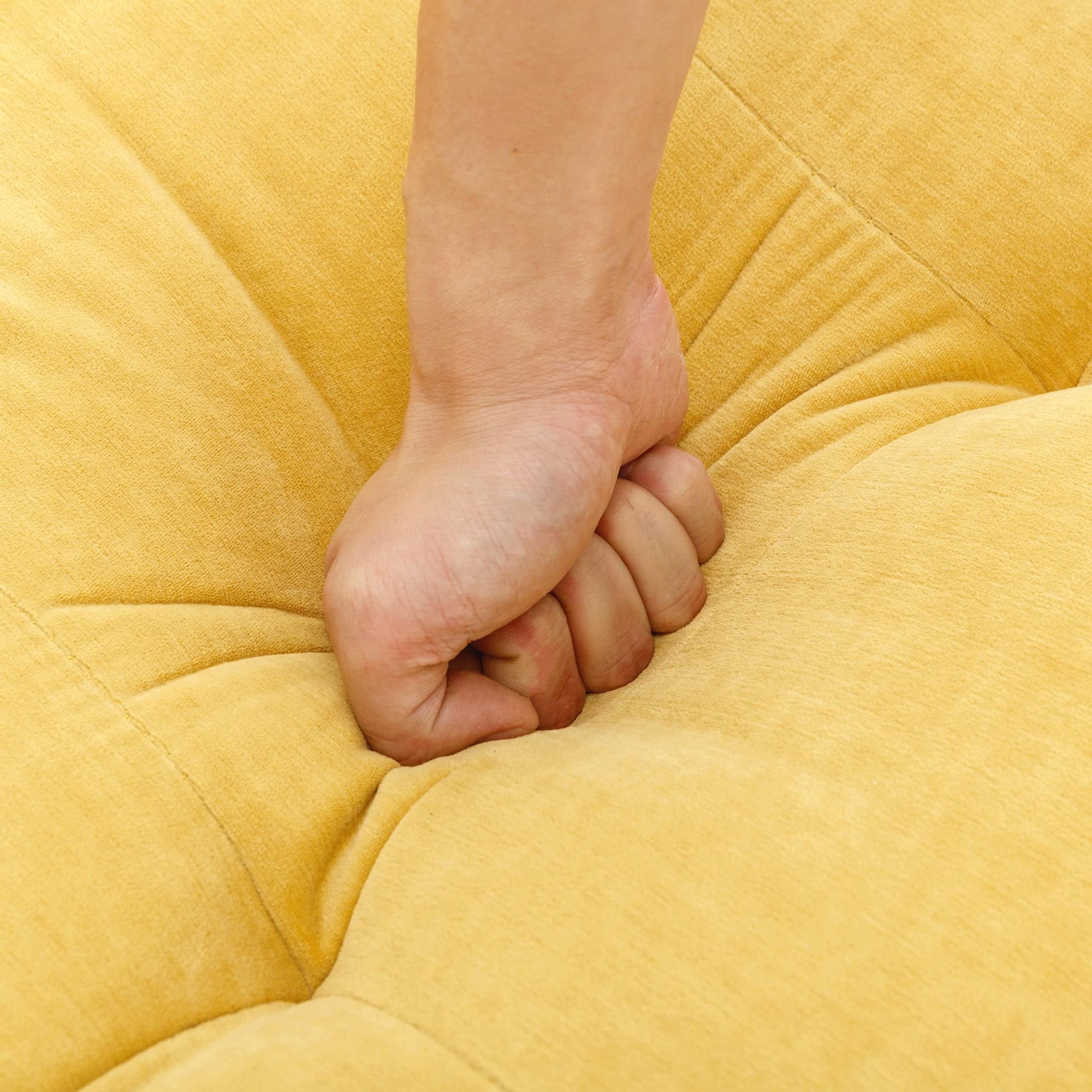 Soft and Comfortable - Upholstered with soft skin-friendly velvet fabric and featuring tufted cushions, offering exceptional comfort for lounging and relaxation. Sink into its softness after a long day and enjoy the ultimate comfort experience. The deep bench seats, plump back cushions and armrests make people feel more comfortable, bringing super-soft lounging comfort to the living room.