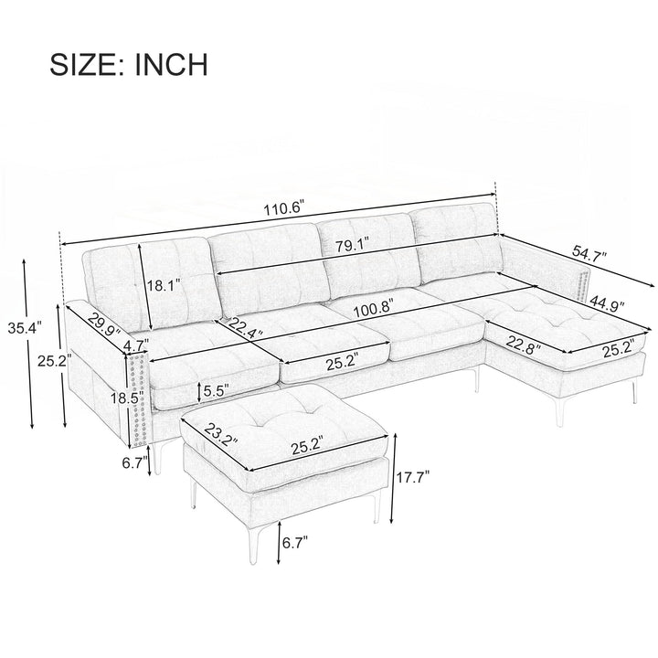 L-shaped Sofa with Movable Ottoman - The ottoman is independently designed, and its position and function can be changed at will. Easily transform this sectional sofa into different configurations to suit your space and needs. Whether you want a U-shape, L-shape, or separate pieces, this sofa adapts to your preferences effortlessly.