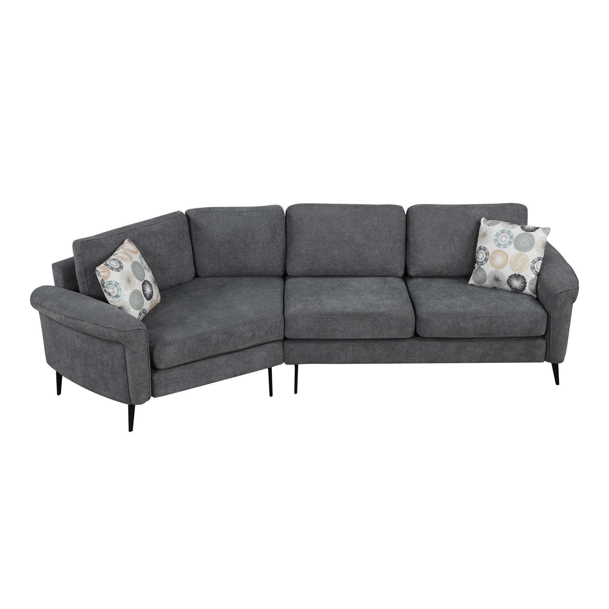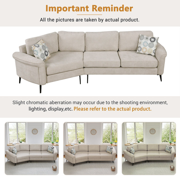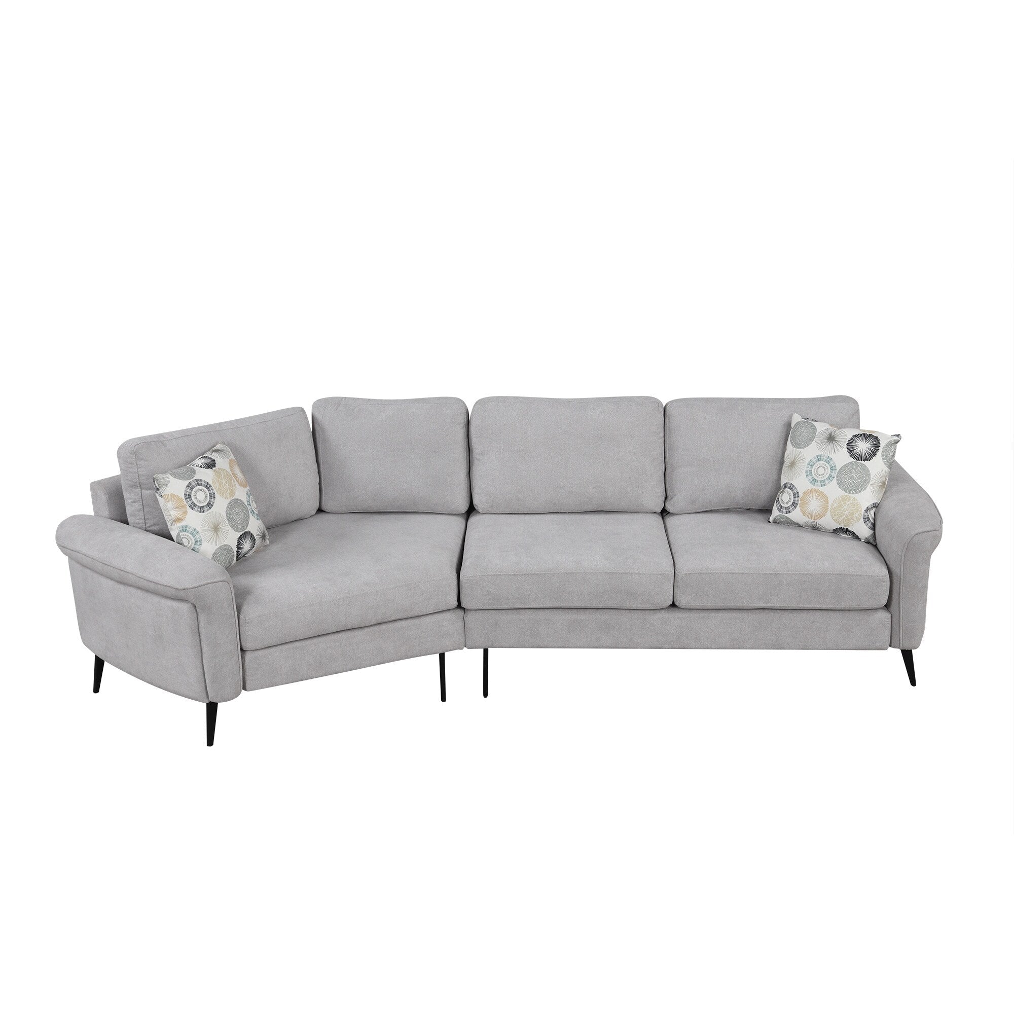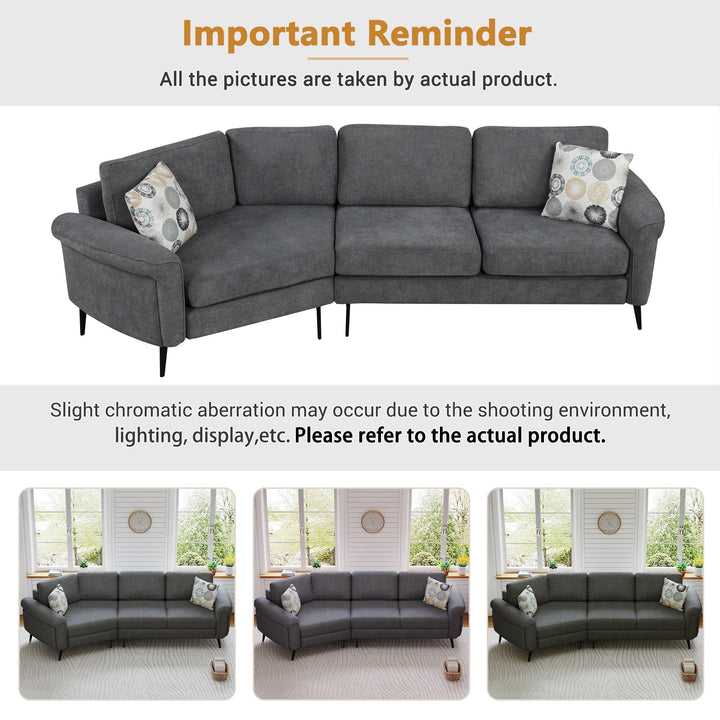 111 3 Seater Sofa Couch, Chenille Curved Sofa Couch with 2 Printed Pillows Modern Upholstered Sofa for Living Room
