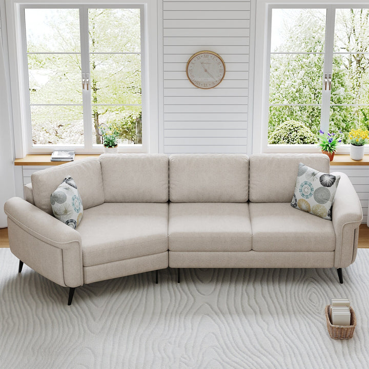 - Make a bold statement in your living space with this 111-inch curved 3-seater sofa, designed for both visual appeal and ergonomic comfort.?