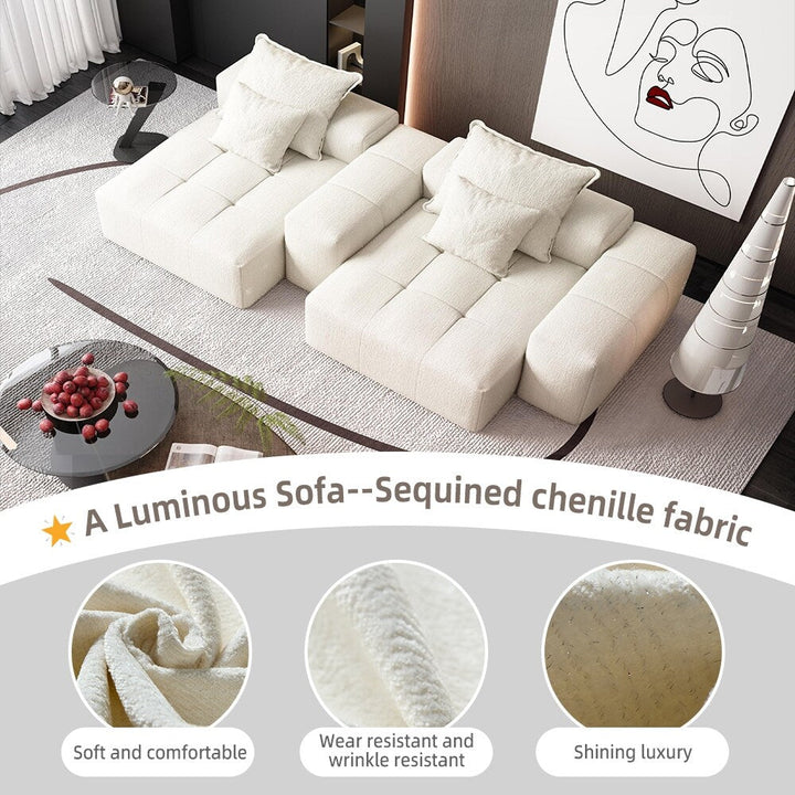 113.39 Chenille Modular 4-Seater Sofa, Sparkling Tufted Design, Non-Slip Base