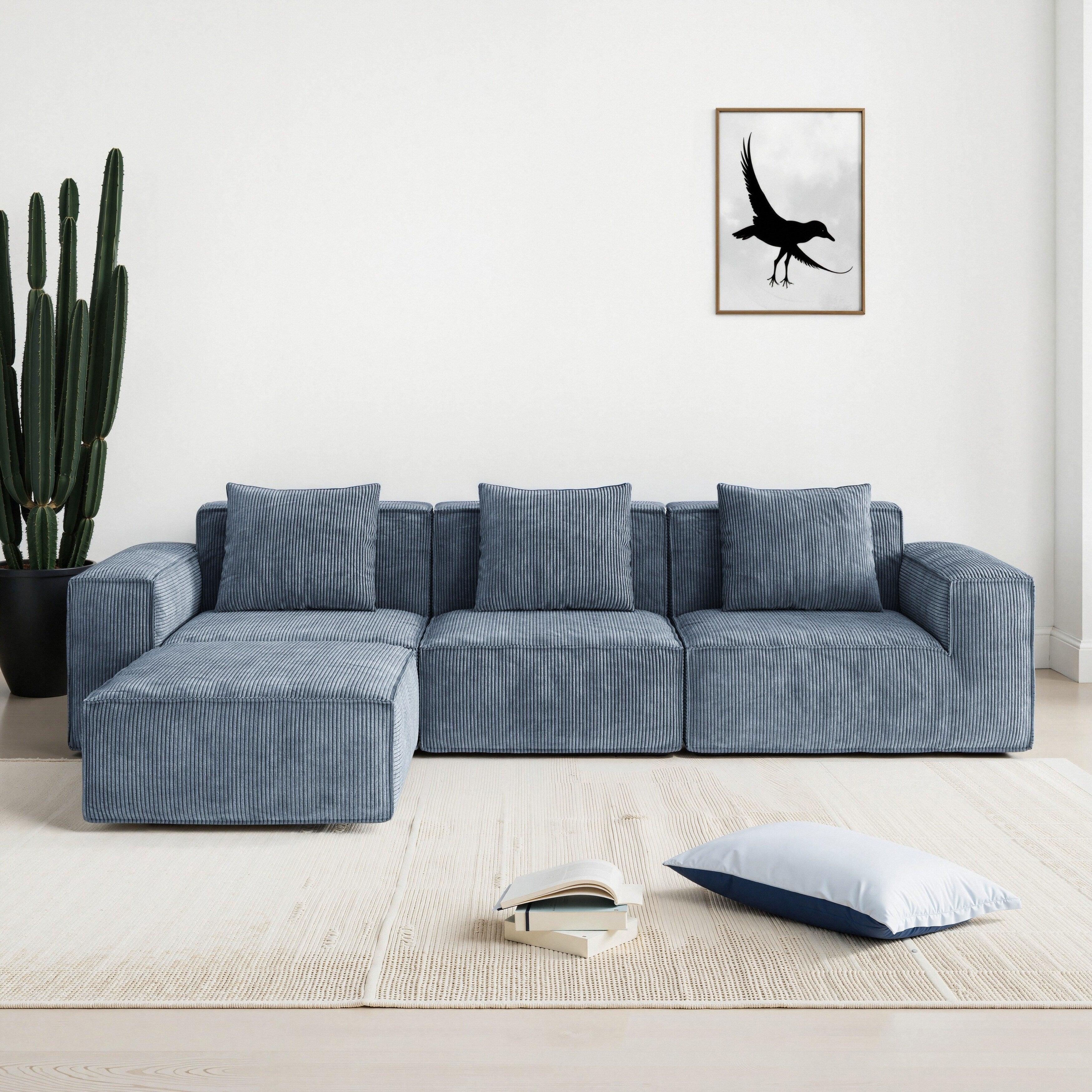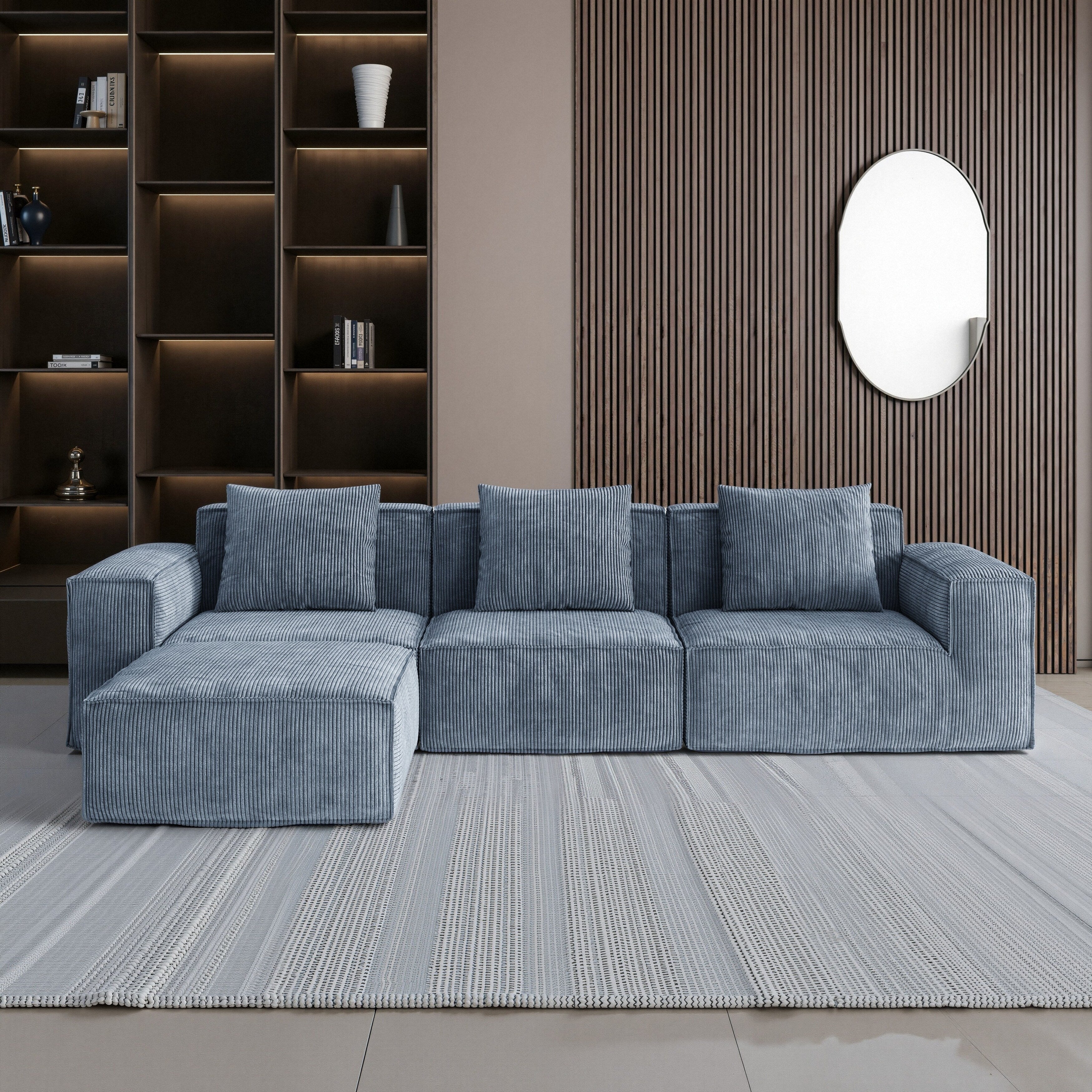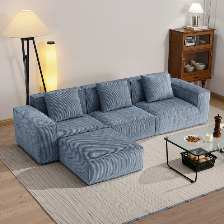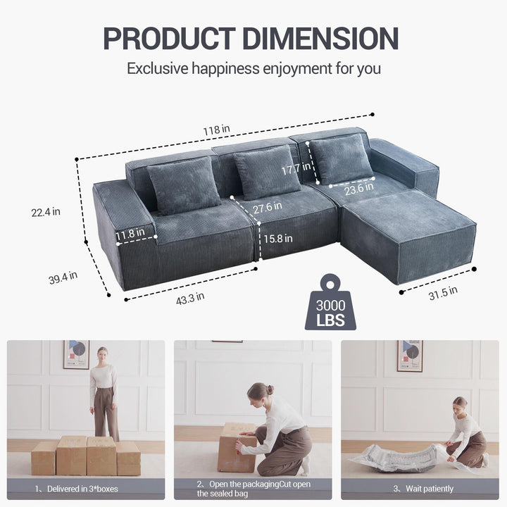 118 Inch Modular Sofa Bed Convertible 3 Seater with Footrest Gray Corduroy Velvet