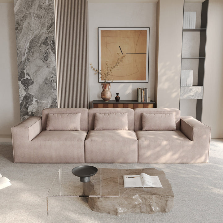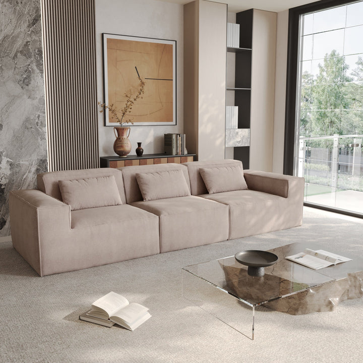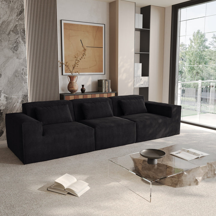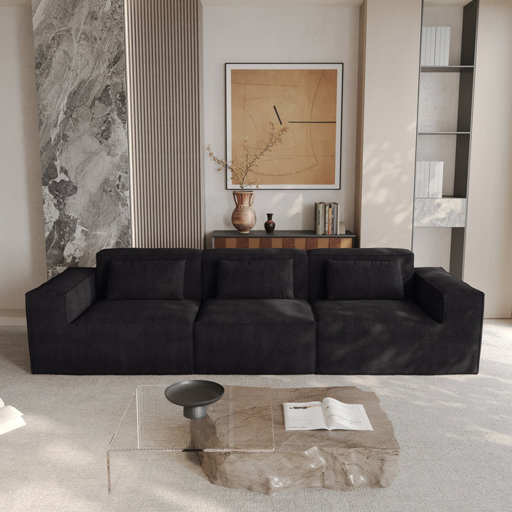 118 Modular Sofa Sectional Couch with Movable Fabric Cover & 3 Pillows, Comfy 3-Seater Corduroy Fabric Couch