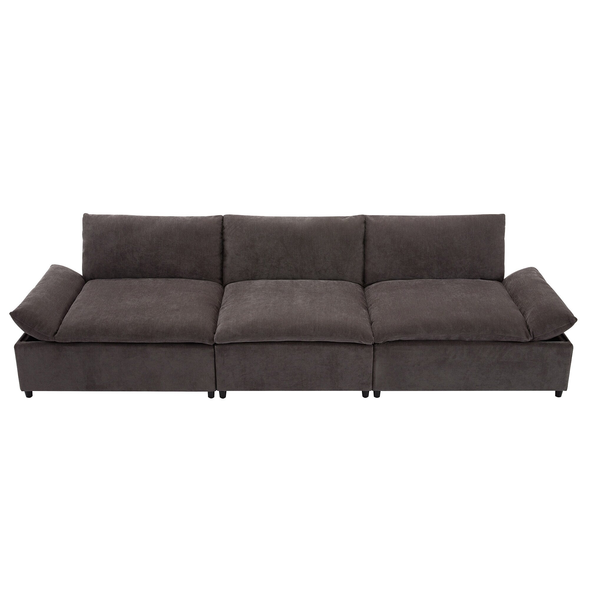 119.5 Large Polyester 3-seater Sofa with 2 Storage Units and Rubber Wood Legs for Living Room