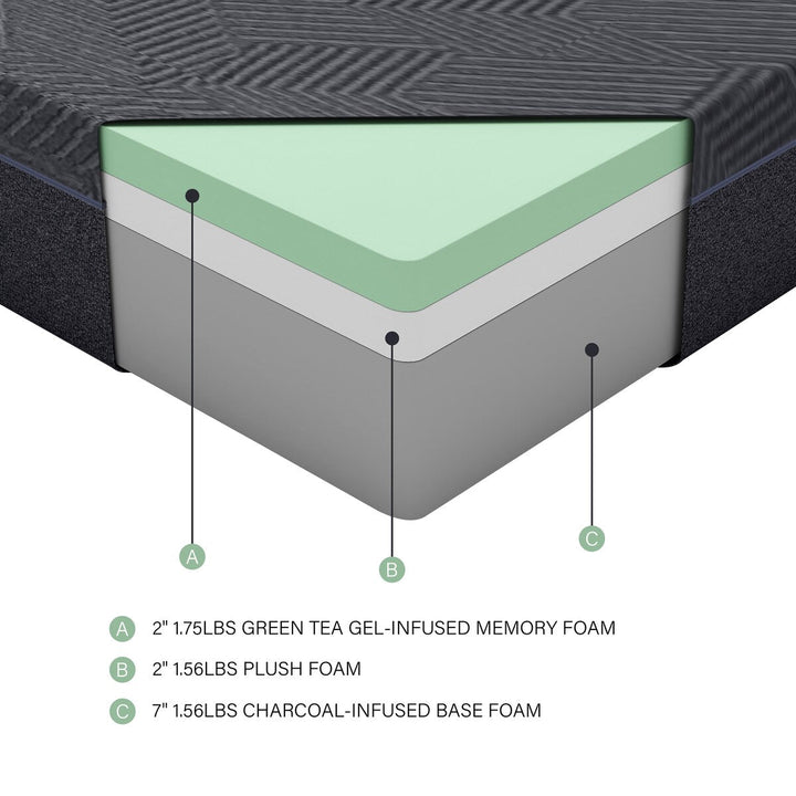 11' Queen Green Tea Gel-Infused Memory Foam Mattress