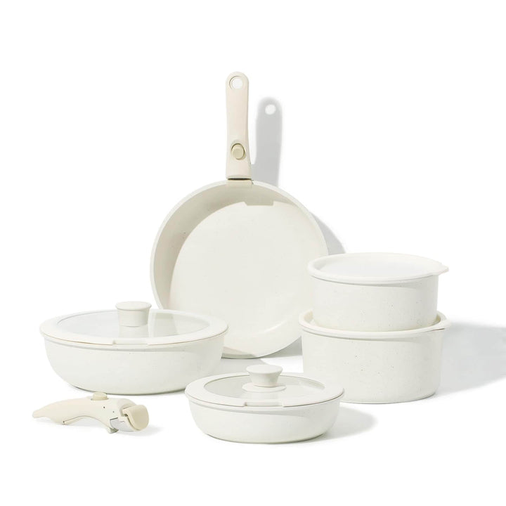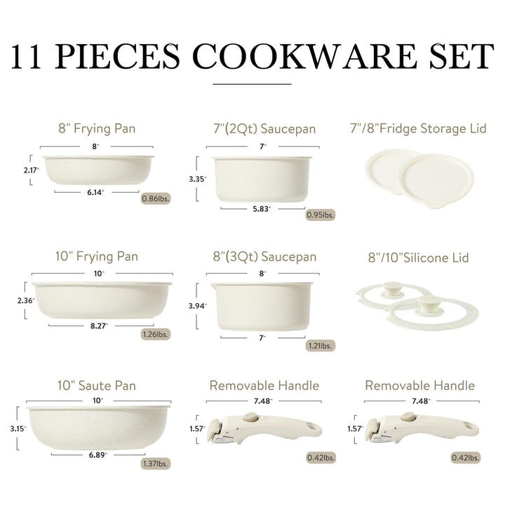11pcs Pots and Pans Set, Nonstick Cookware Sets Detachable Handle, Kitchen Cookware Set, RV Cookware Set, Oven Safe, Cream White