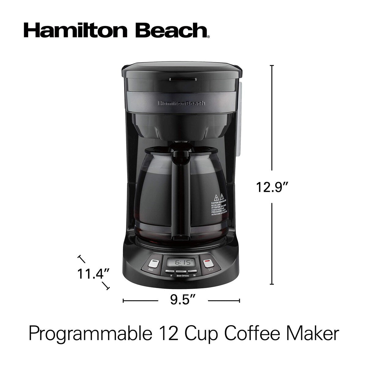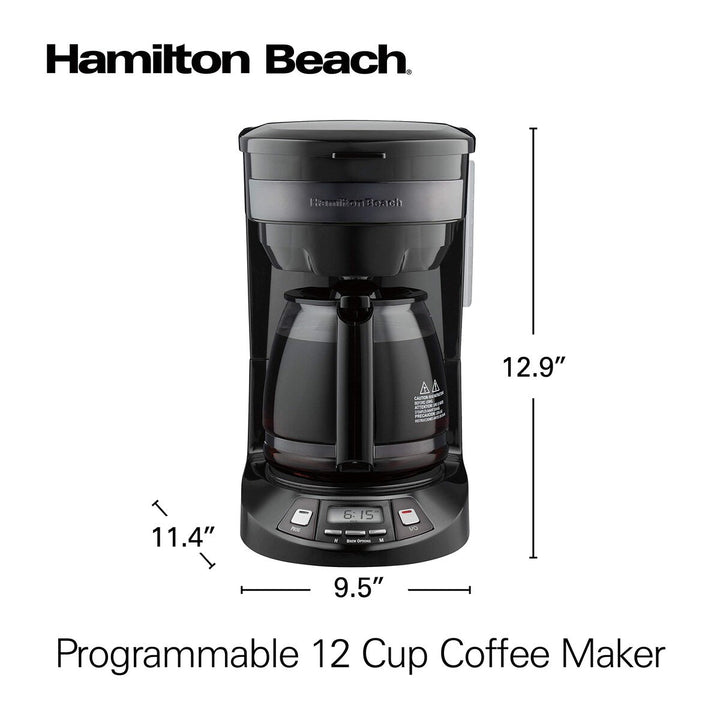 12 Cup Programmable Drip Coffee Maker with 3 Brew Options, Glass Carafe, Auto Pause and Pour, Black Stainless (46293)