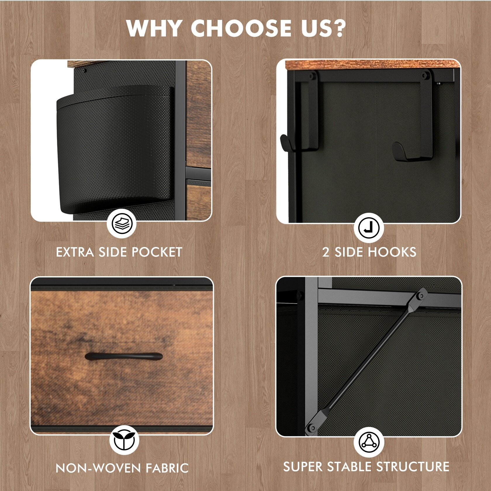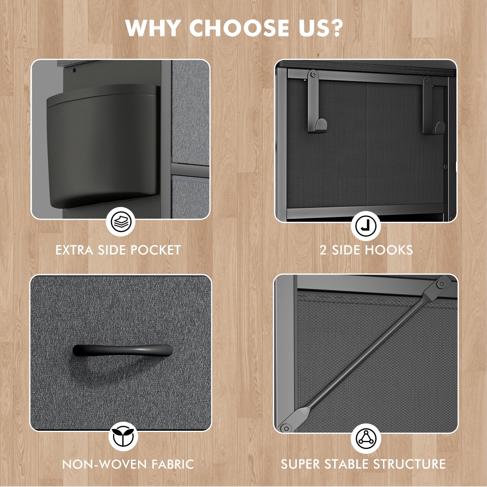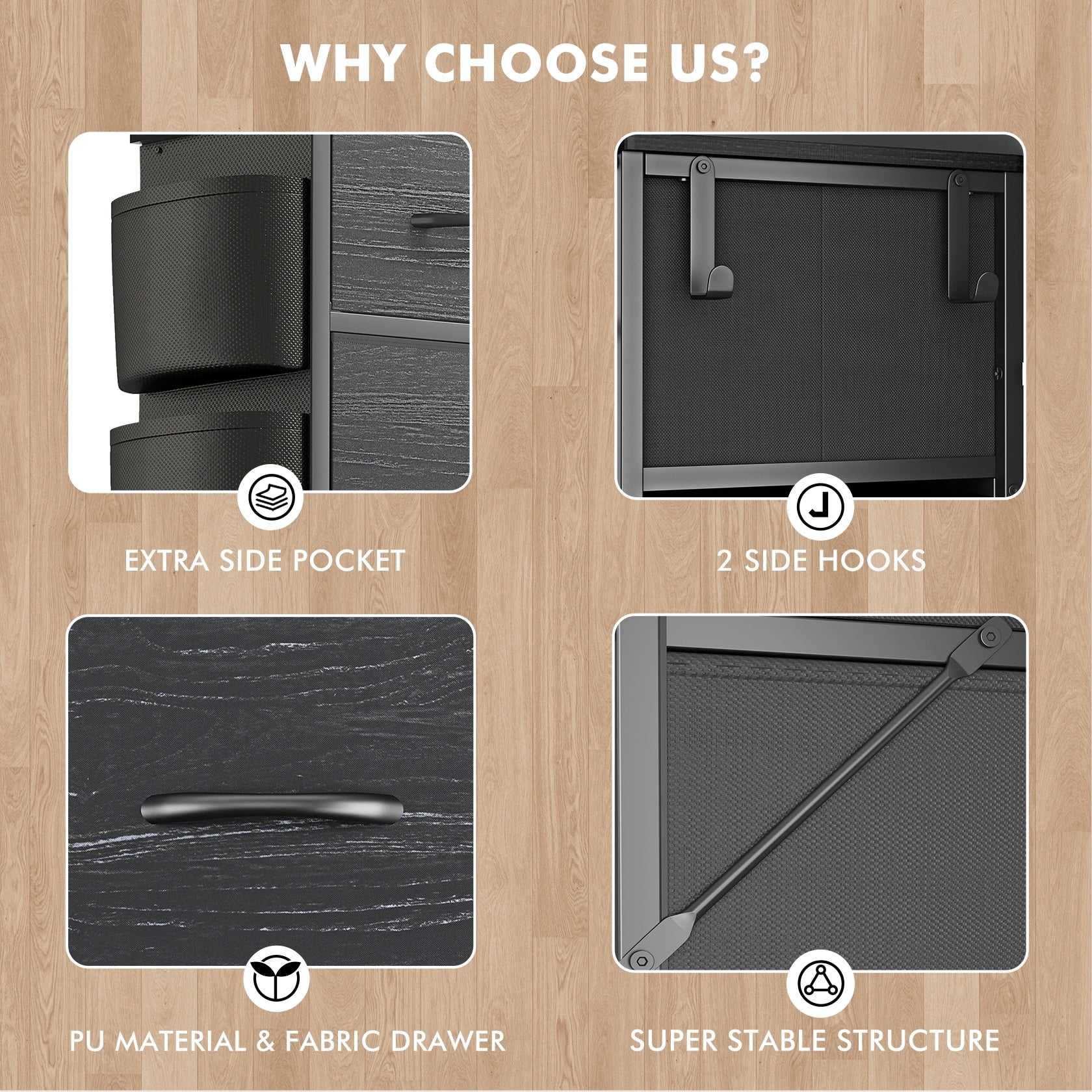 - Drawer Type: Fabric Drawers