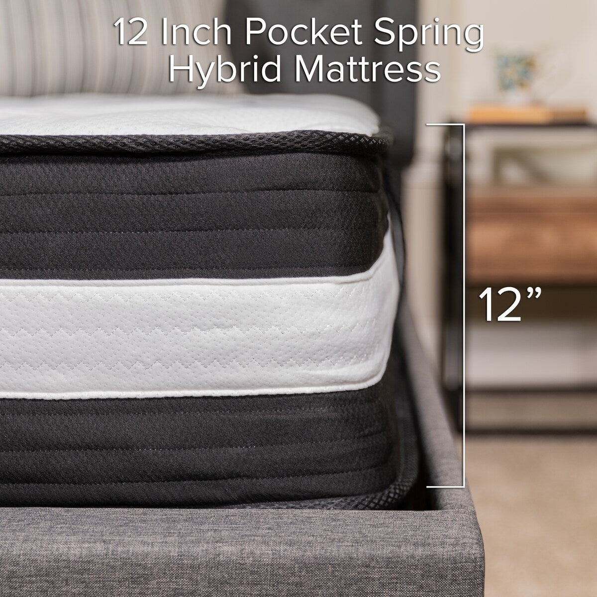 12 Foam and Pocket Spring Mattress, Mattress in a Box - Premium Mattress - White