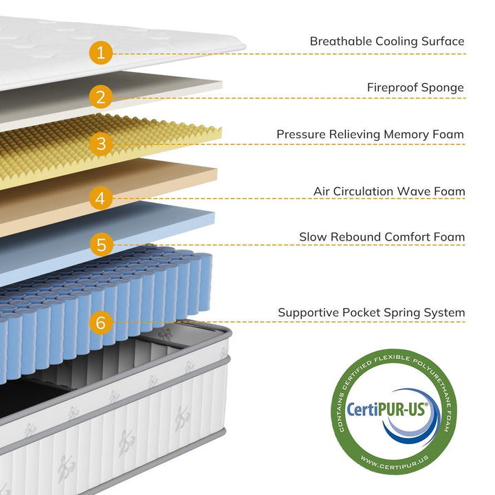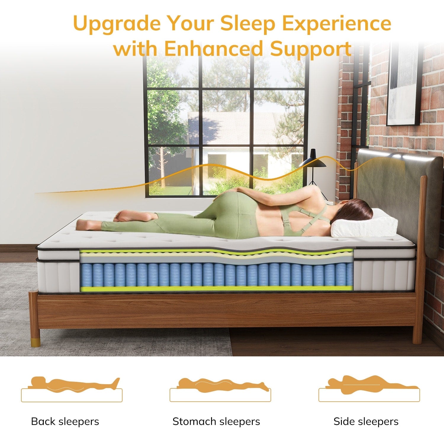 Superior Support for a Restful Night - Our queen-size mattress features an independent pocket spring system that evenly distributes your weight, allowing for optimal support from head to toe. This thoughtful design helps alleviate fatigue and tension, promoting deep and restorative sleep.