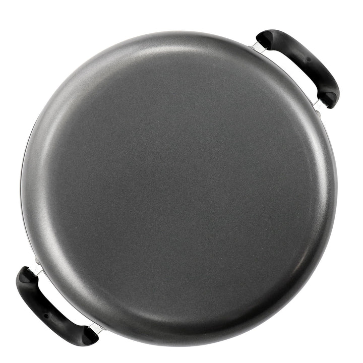 The Gibson Everyday 12 Inch Highberry Nonstick All Purpose Pan with Lid in Grey suits chefs of all skill ranges. It's nonstick interior provides easy food release and fast cleaning afterwards. The bakelight knob and handles stay cool to the touch through out the entire cooking process. For long lasting care and quality, hand wash the pan. The unique deep pan makes it possible to sear, saute, deep fry, and stew for a multitude of meals.