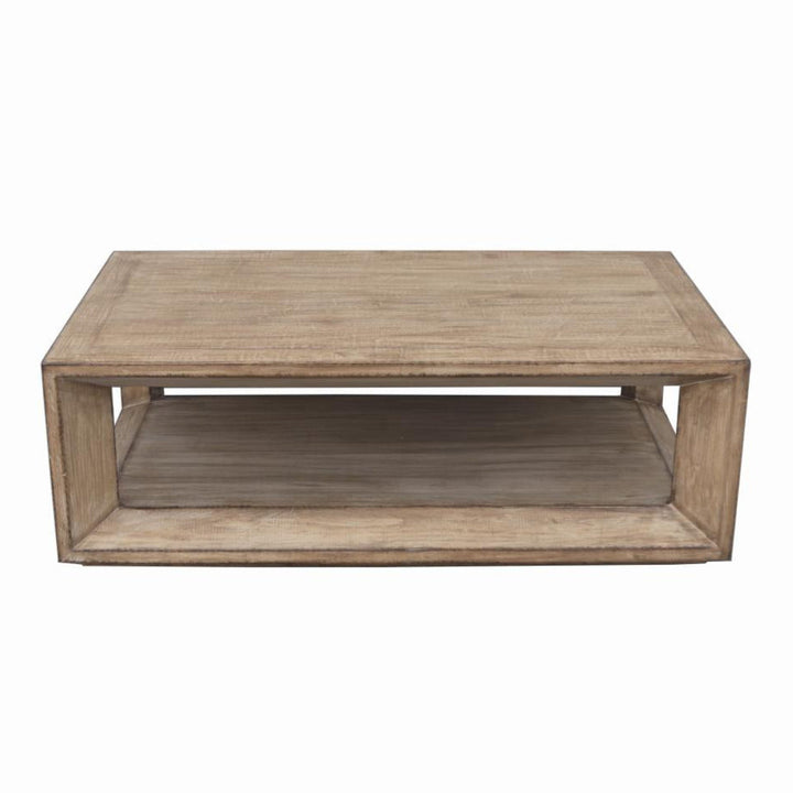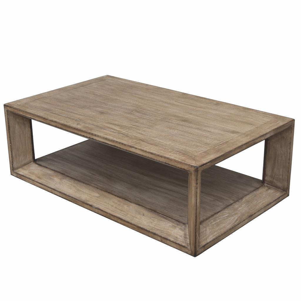 Crafted from reclaimed pine and finished in an antiqued natural finish. The bottom shelf provides ample storage. Imported