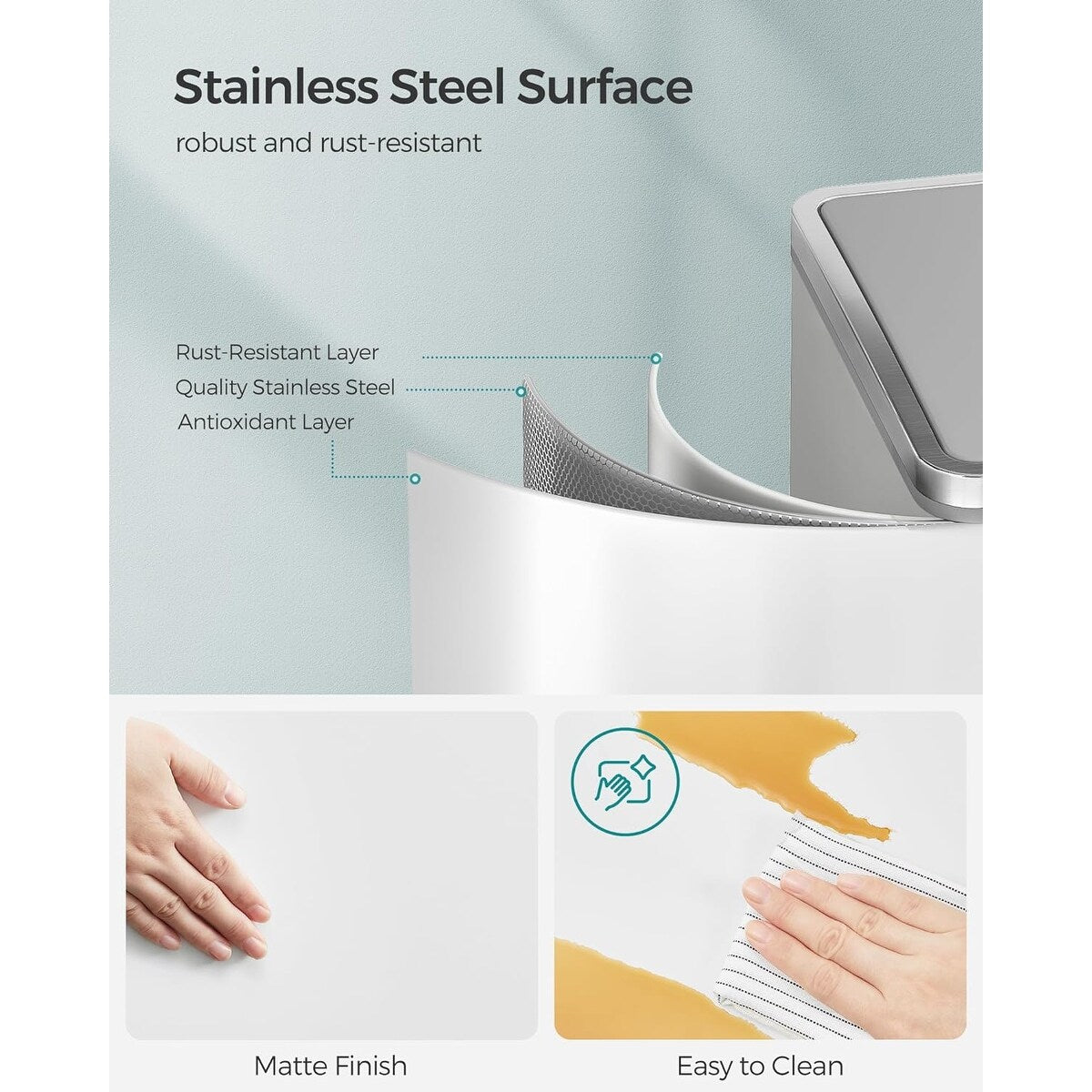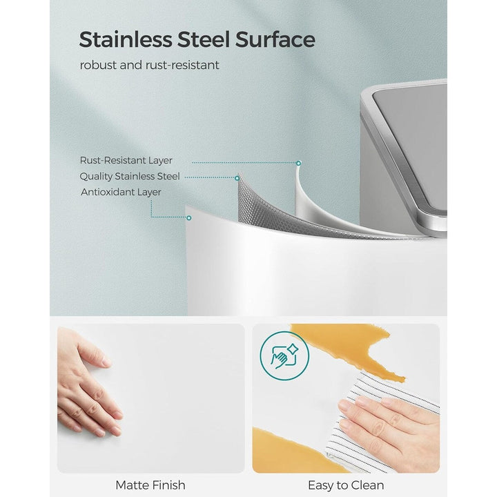 - [Strong yet Soft] The rigid stainless steel body of this garbage can withstands long-lasting use; the soft-close lid ensures the environment remains peaceful, with no loud slamming to be heard
