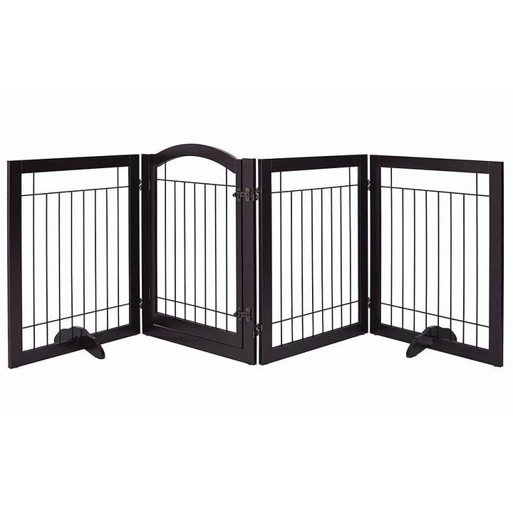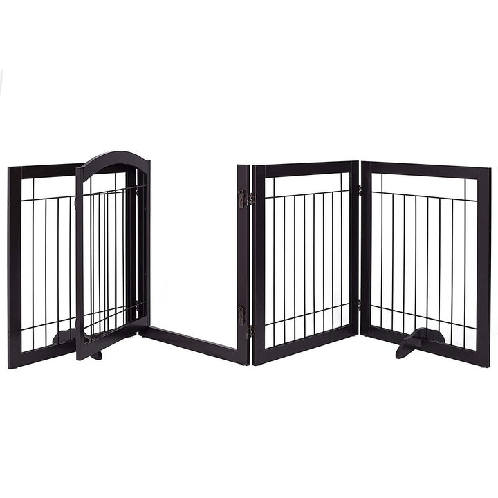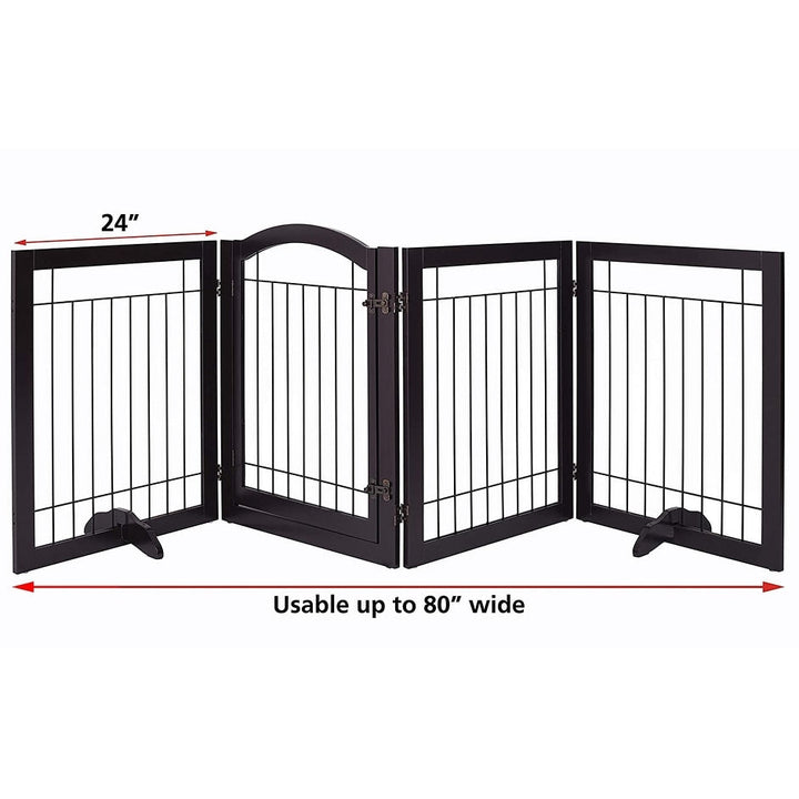 The SPIRICH Extra Wide Dog Gate with Door is perfect for pet owners who want to keep their furry friends safe and secure. With its sturdy 360-degree hinges, this pet gate can be configured in multiple ways to fit doorways, hallways, and other wider areas. Its lockable door provides easy access between rooms without having to move the entire unit. The freestanding design requires no wall attachments and features two support feet for additional balance. Made from durable solid wood and strong metal wire interior, this pet gate is perfect for large dogs or puppies who like to chew on everything while fitting beautifully in any home decor.