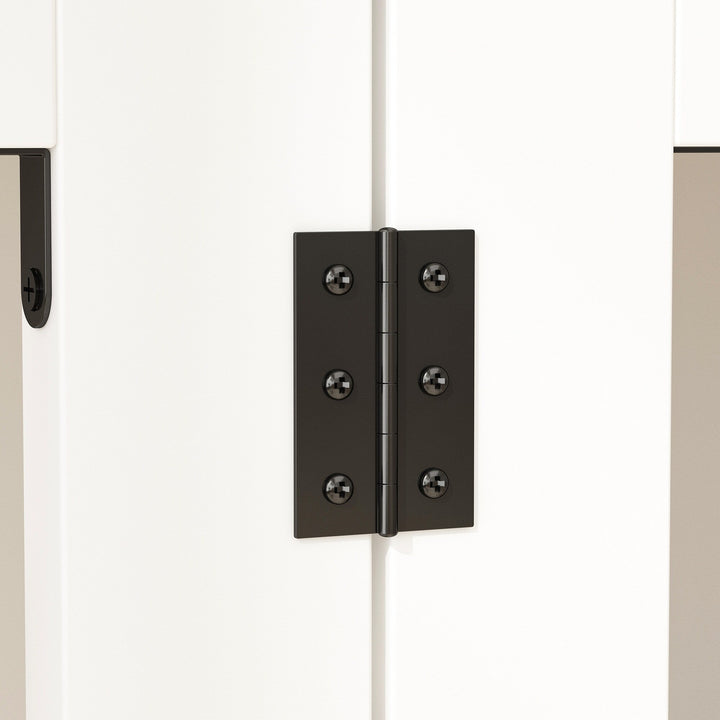 - Durable construction with iron reinforcements and P2 grade PB board for stability.