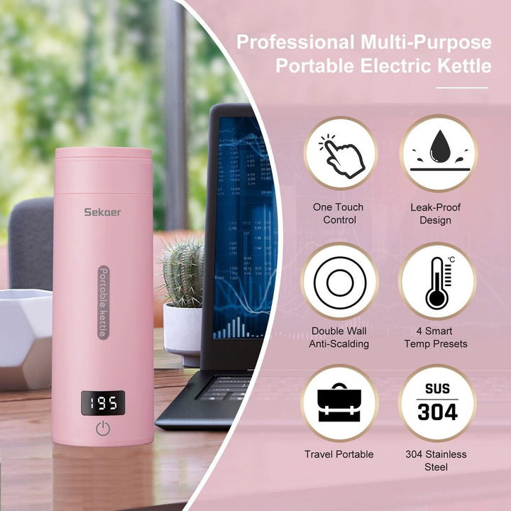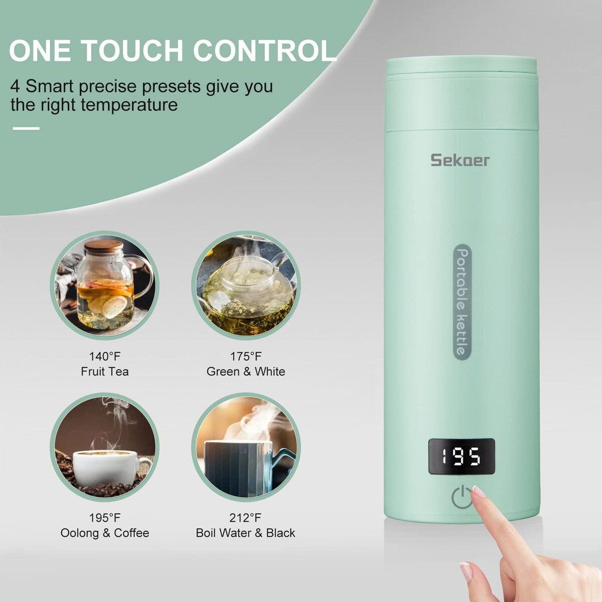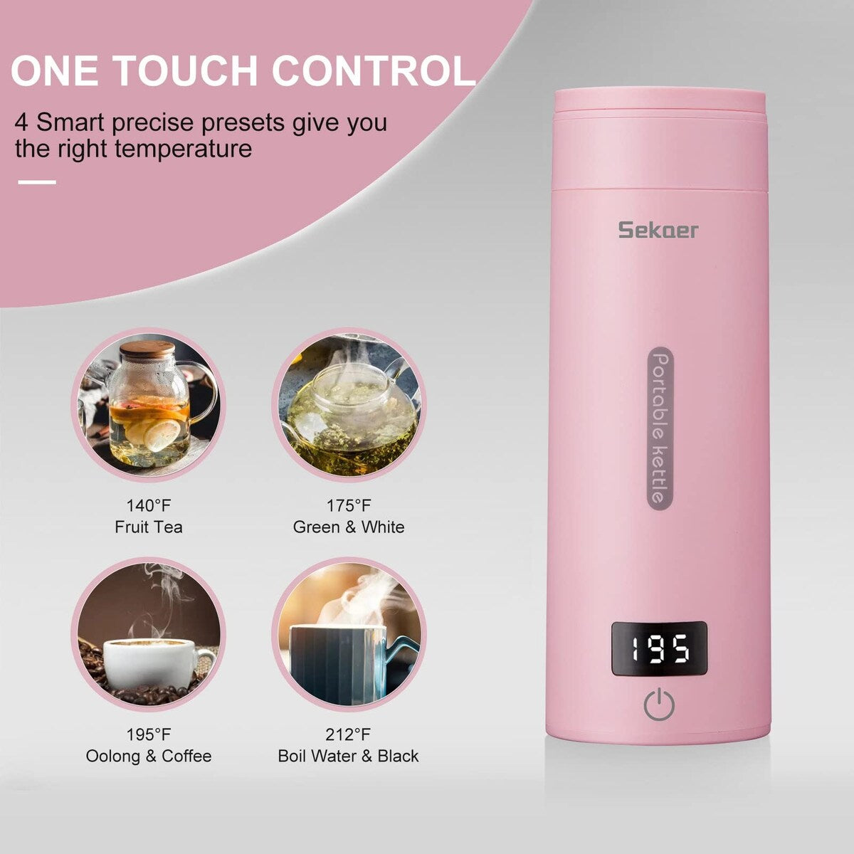 4 Smart Temperature Preset - The portable electric kettle preset temperatures are 212-195-175-140°F, suitable for Black tea, Coffee, Oolong, Green tea, Fruit tea, etc. It inherits all the features of kettles, thermos and cups, meet different needs.
