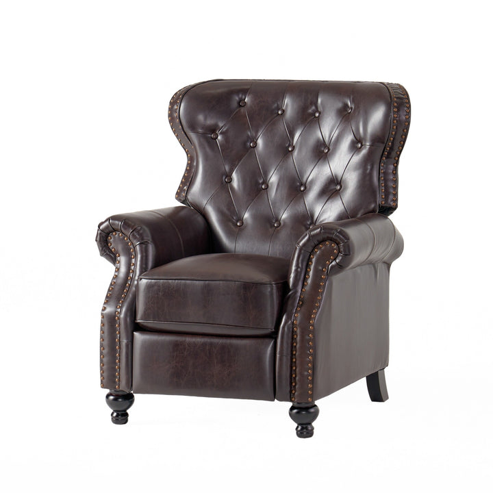 Waldo Contemporary Pushback Recliner - Button-Tufted Diamond Stitch Design with Rolled Arms and Nailhead Trim