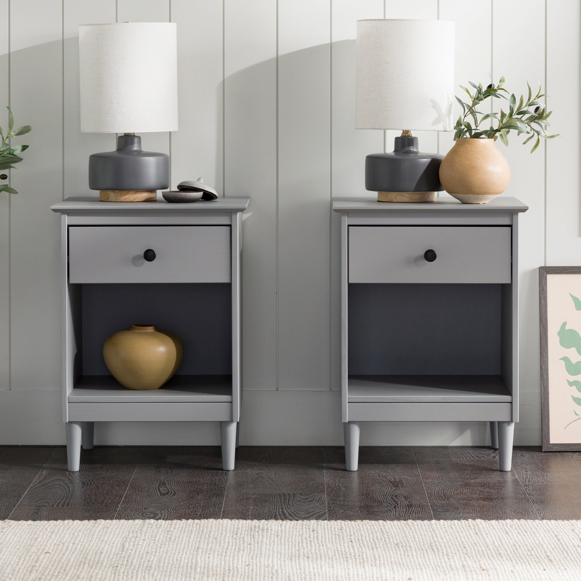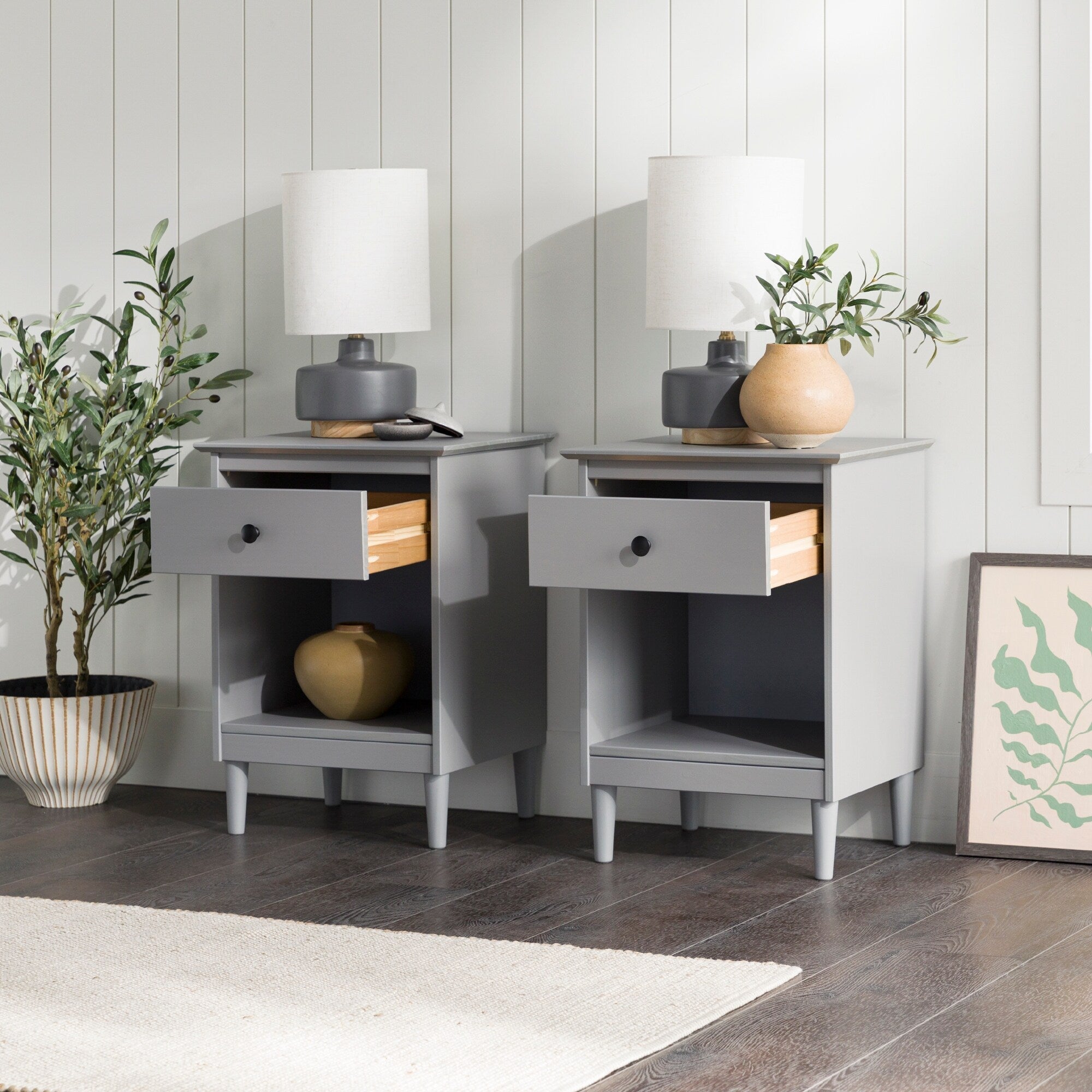 Walker Edison Bullrushes 1-Drawer Solid Wood Nightstand (Set of 2)