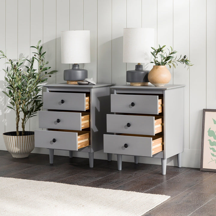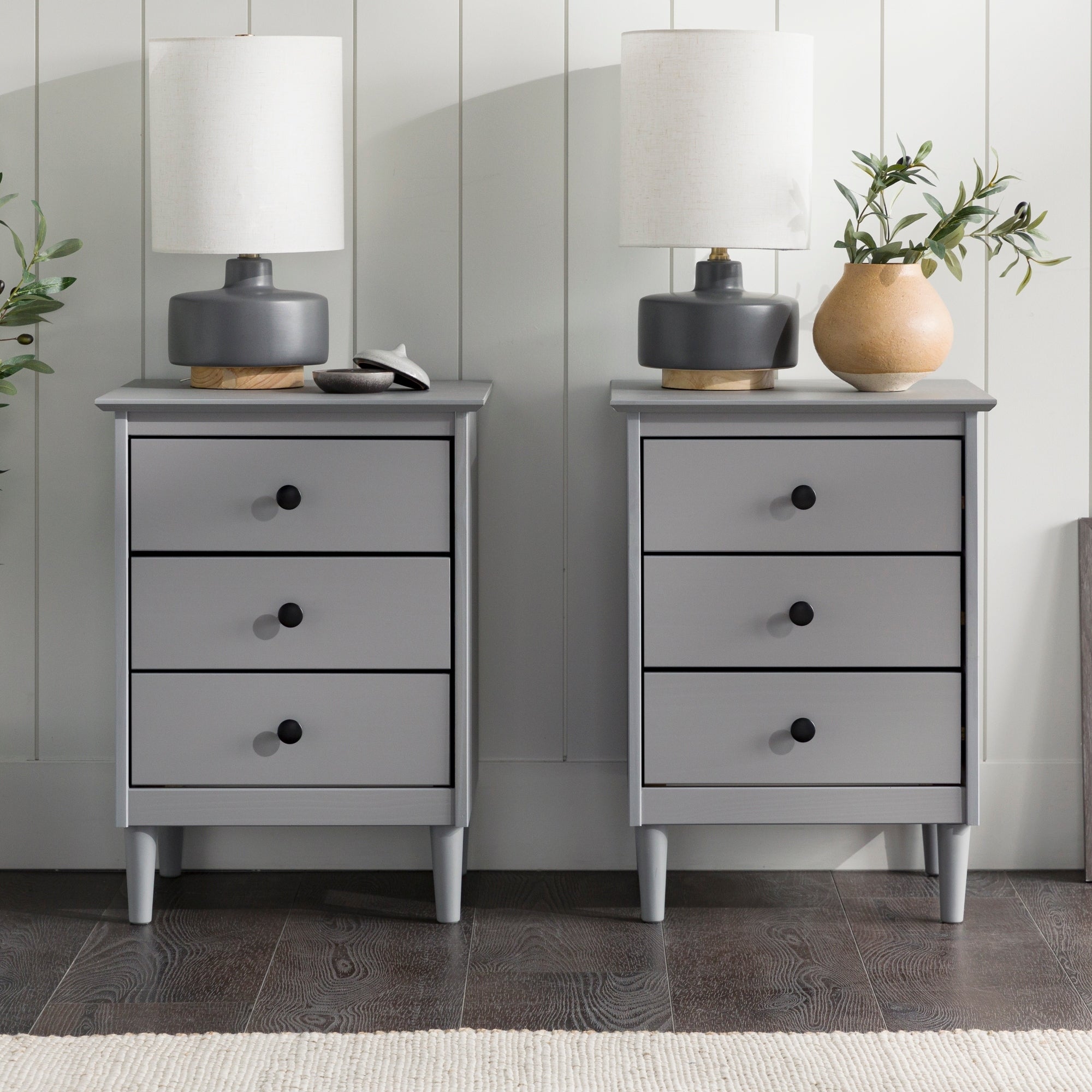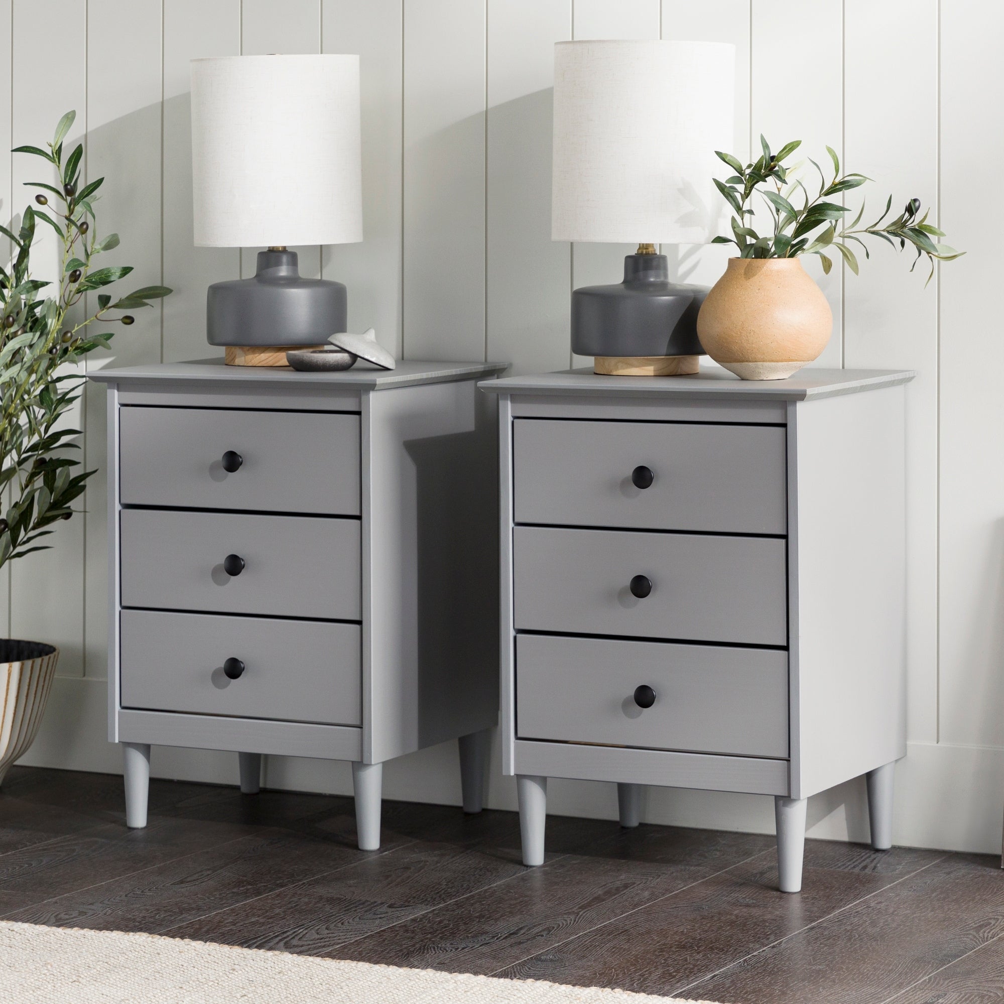 Walker Edison Bullrushes Solid Wood 3-Drawer Nightstand, Set of 2
