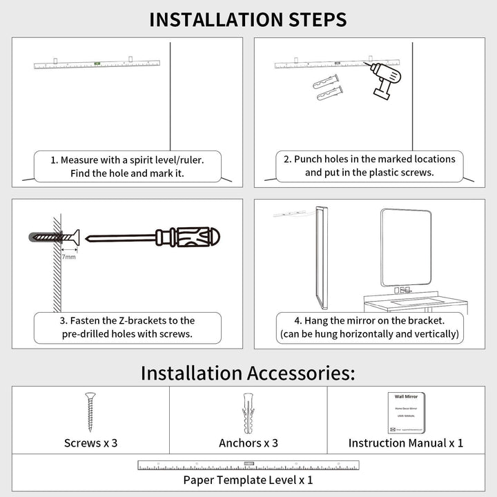 Our high-quality frame mirror is made of HD mapping glass and high-quality metal frame, which is sealed and protected by multi-layer packaging, and will not be easily broken and twisted. Our framed mirrors can expand the field of vision and make people feel happy, which can also be reflected in HD square mirrors to help you groom yourself and radiate the most beautiful and confident self. It is available in a variety of sizes and colors, suitable for hanging in bathrooms, living rooms, bedrooms, hallways, kitchens, etc. as bathroom mirrors, wall mirrors, vanity mirrors, decorative mirrors, perfect for various styles.