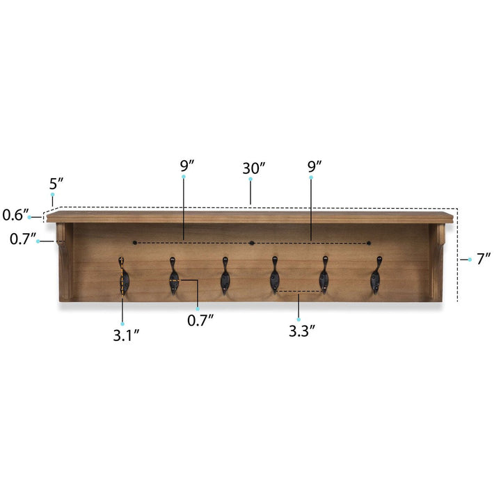 Wallniture Mante Key Holder for Wall, Decorative Mail Holder with Shelf, Large Coat Hooks, Wood Wall Key Hanger