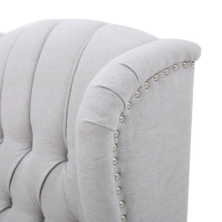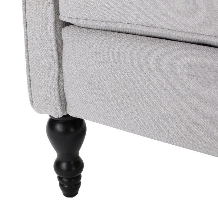 Relax in style and comfort with the Walter Tufted Fabric Recliners, a set of two chairs that exude both elegance and sophistication. These recliners are designed with a push-back recline mechanism and an adjustable footrest, making it easy to unwind after a long day. The contemporary design features smooth upholstery and tonal piping with a minimalistic yet refined structure that emphasizes both comfort and functionality. The button-tufted stitching adds an extra touch of sophistication to the backrest, while nailhead accents along the edges and rolled recessed arms complete the refined contemporary look. Choose from a variety of upholstery colors to perfectly match your decor style.