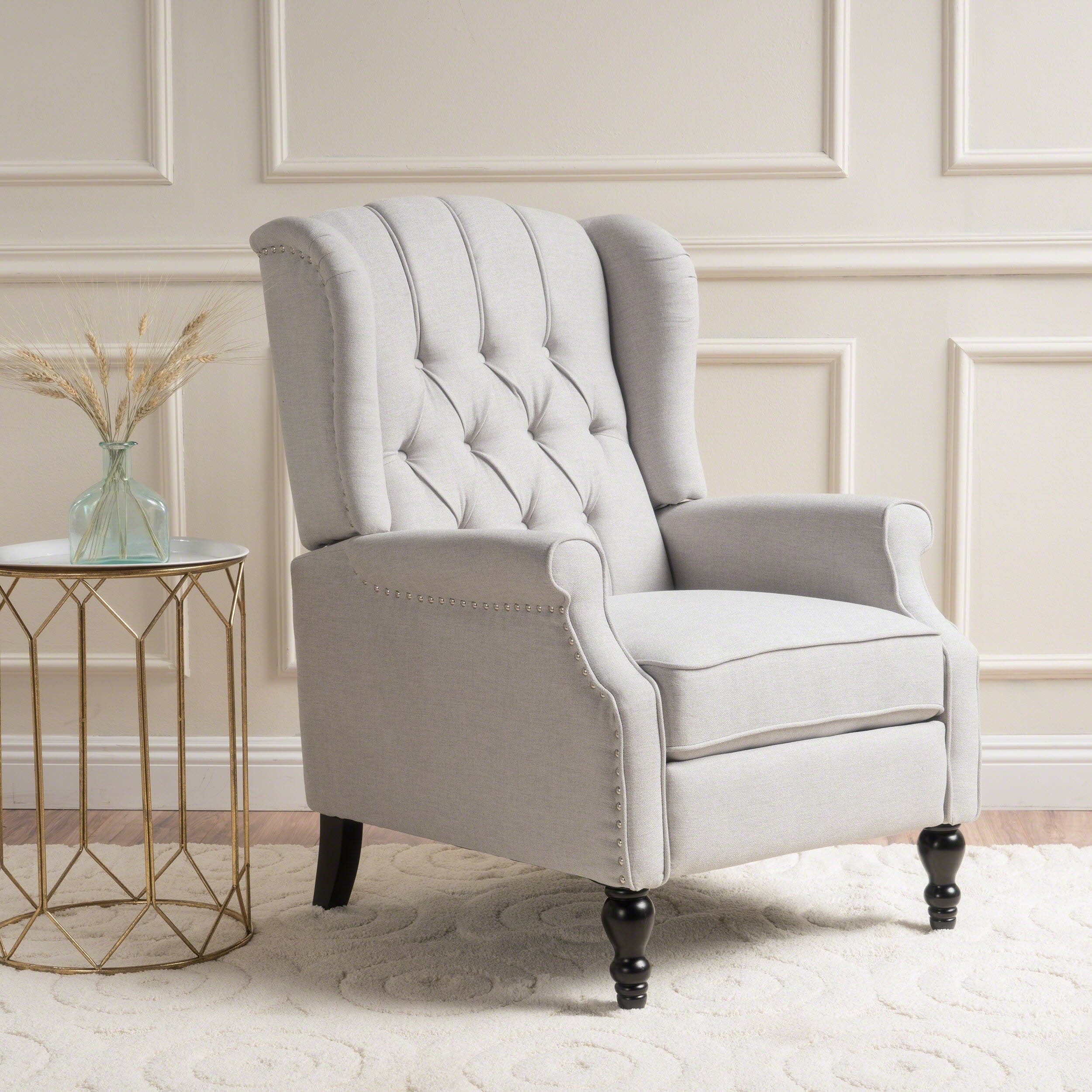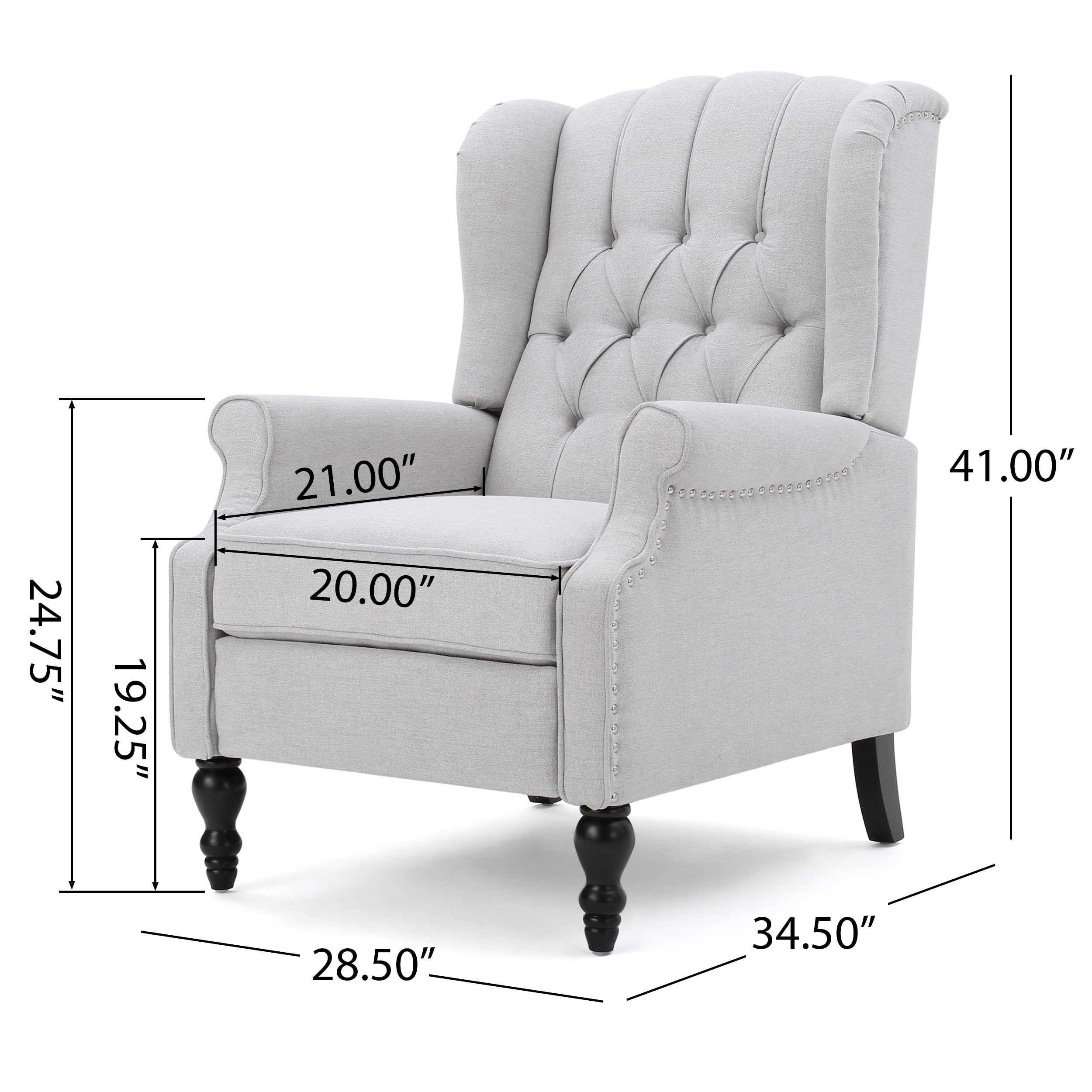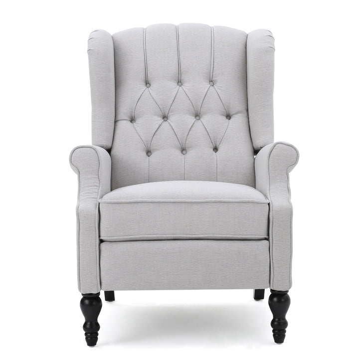 Indulge in sophisticated comfort with the Walter Tufted Fabric Wingback Recliner Club Chair by Christopher Knight Home. With its classic wingback design, rolled armrests, cushioned seat, and extendable footrest, this recliner exudes traditional appeal with a modern twist. Choose from a variety of elegant colors and enjoy the button tufting and nailhead trim that embellish the fabric upholstery. The pushback recliner allows you to lay back and relax with ease, while the wingback design adds both style and functional comfort to any room.