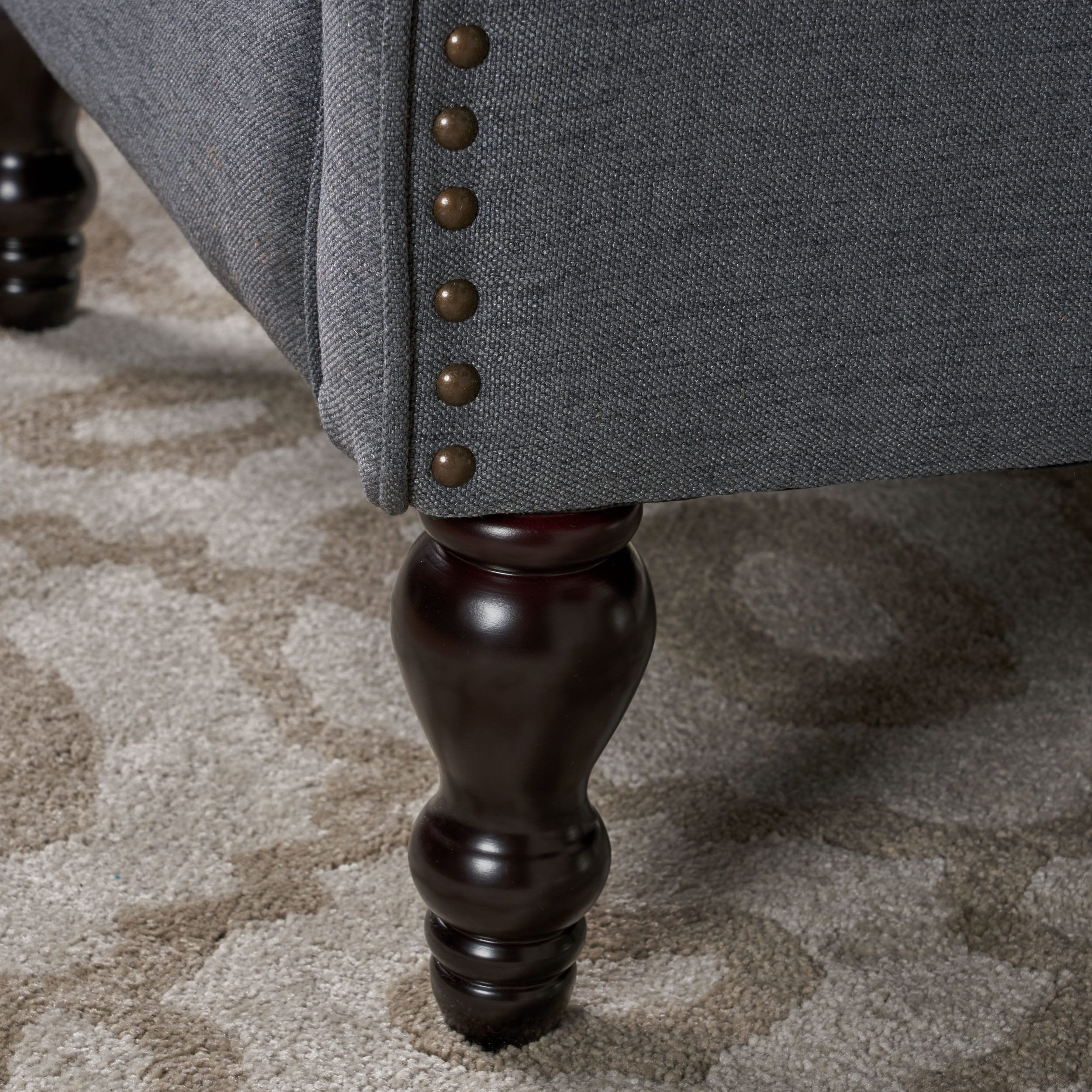 - Birch wood legs with a dark brown finish