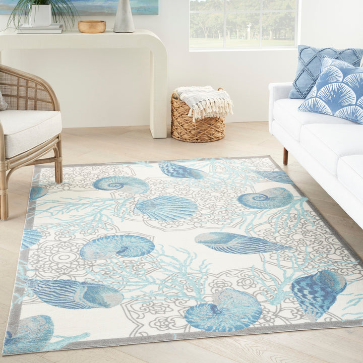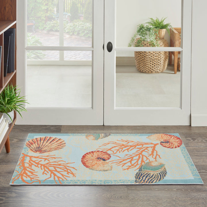 Waverly Sun & Shade Shore Thing Tropical Sea Shell Floral Indoor Outdoor Area Rug