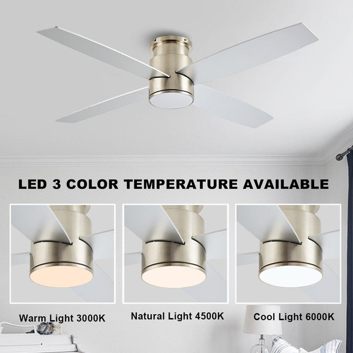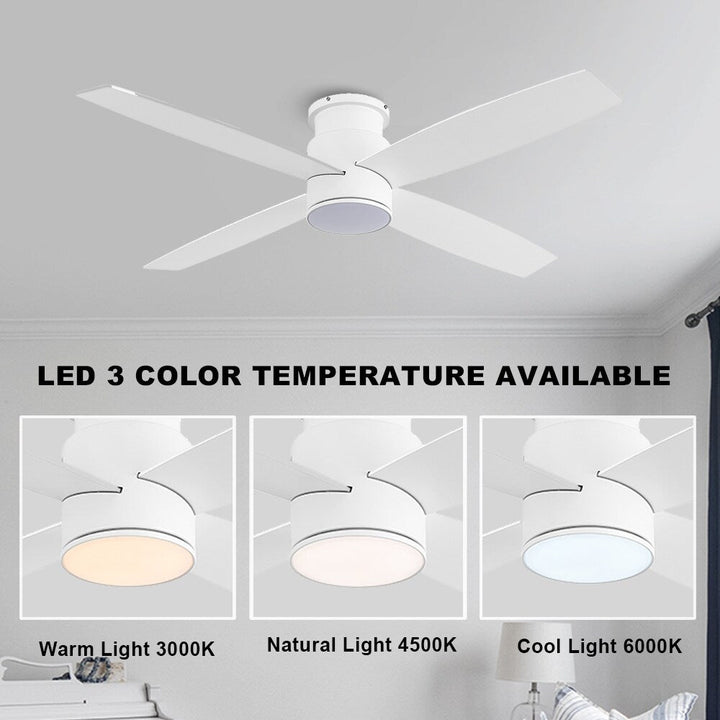 WINGBO 44/52 Inch Flush Mount DC Ceiling Fan with Lights and Remote, 4 Reversible Blades