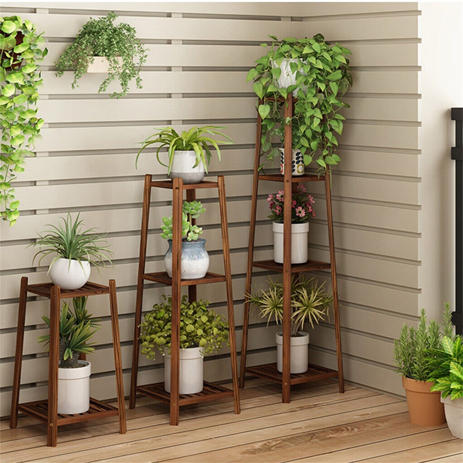 Nice Awesome Product:Simple and attractive planter stand, the slats on each layer are closely arranged to effectively prevent the flowerpot from falling. Hollow-out laminates is conducive for plant growth because of effective drainage and ventilation.