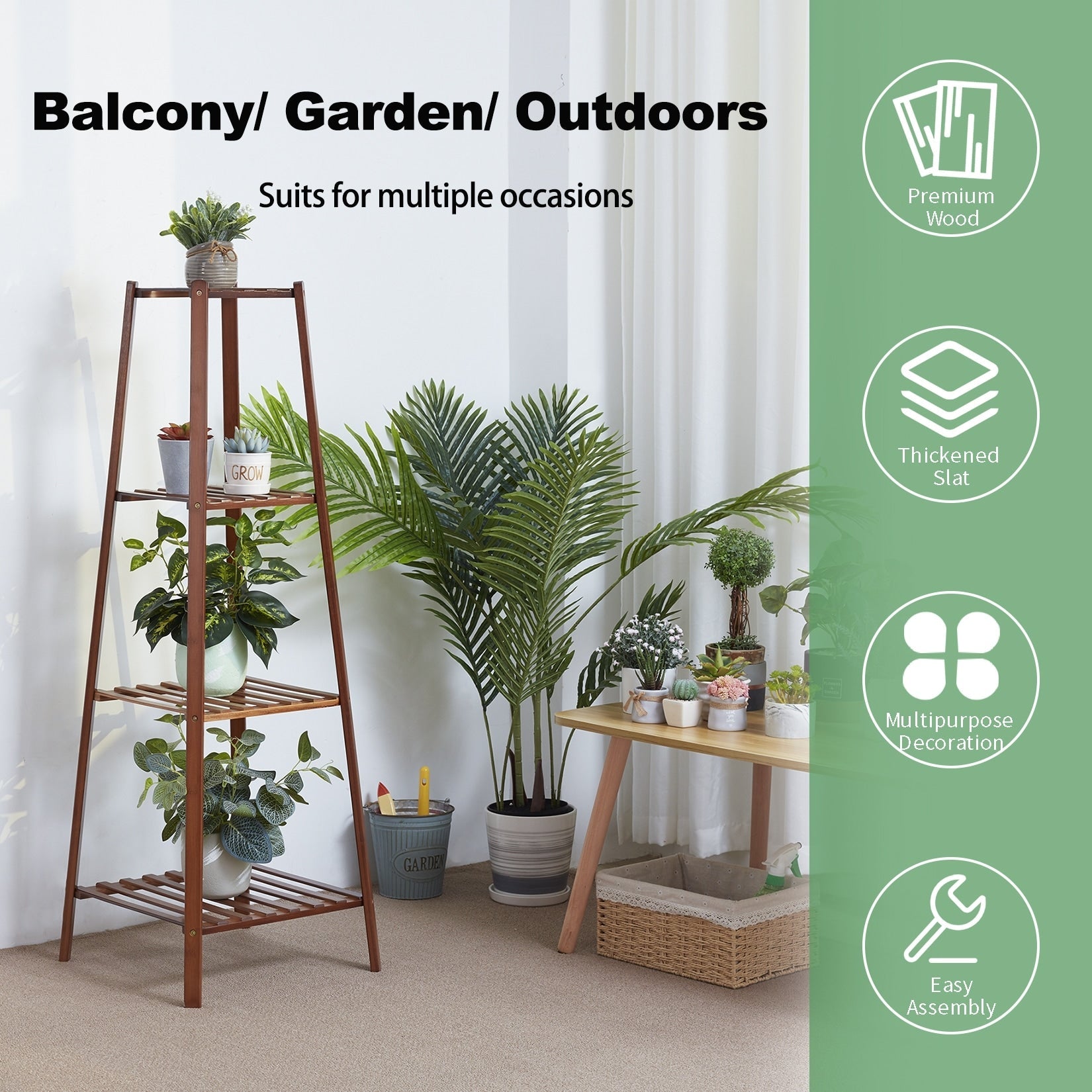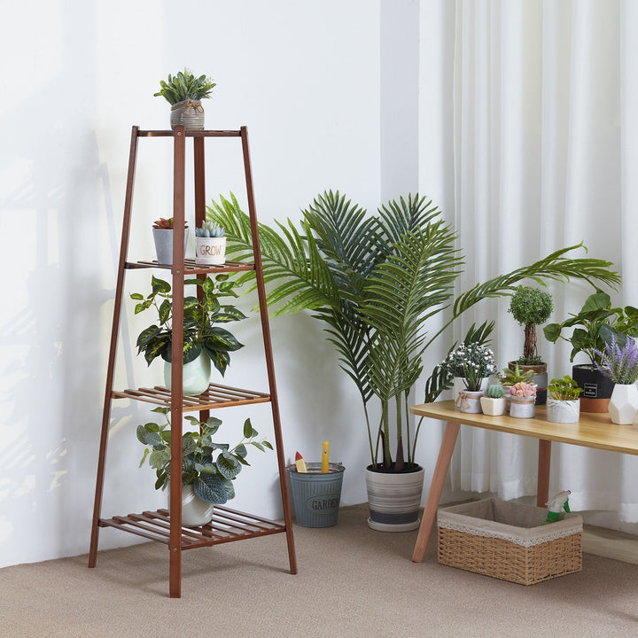 Tall Plant Stand:Bamboo rack stand is wide in plate, perfect for displaying a variety of thriving house plants or fresh floral flowers, succulents, potted donkey tails, collectibles, even heavy pots bonsai addition to be a flower stand, it also can be a fancy shelf for storage and decoration.