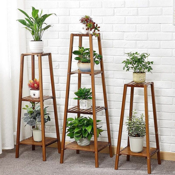 Wooden Flower Stand Plant Frame Balcony Multi-Tier Potted Shelving
