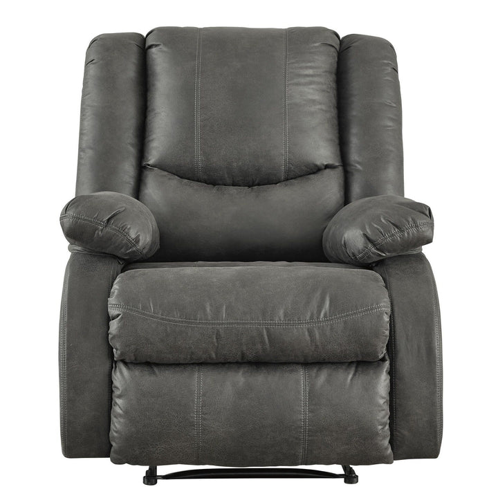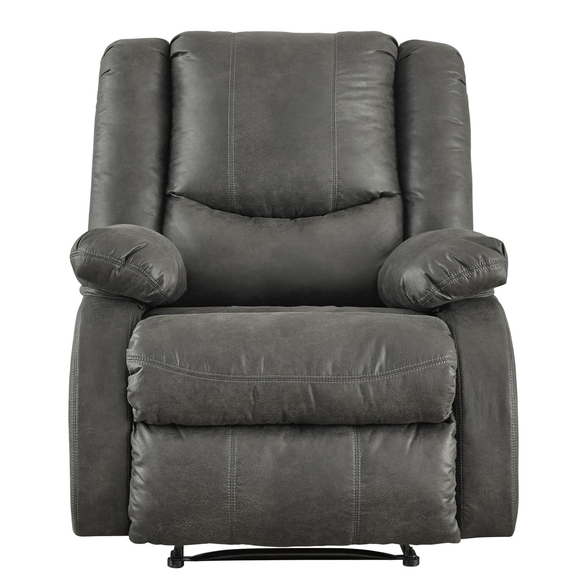 Add comfort and style at the same, with this sturdy wooden constructed zero wall recliner, upholstered in a blend of polyester and faux leather, with tufted backrest and pillow top armrests. Pull tab mechanism with gliders in front, adds to comfort. It is complimented with contrast stitching.